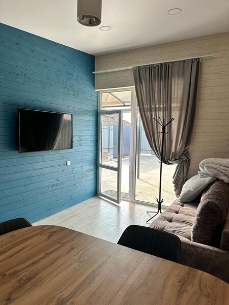 Одноэтажный дом, с панорамным остеклением. Рассчитан для комфортного проживания до 5-ти человек.