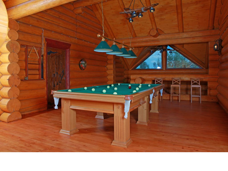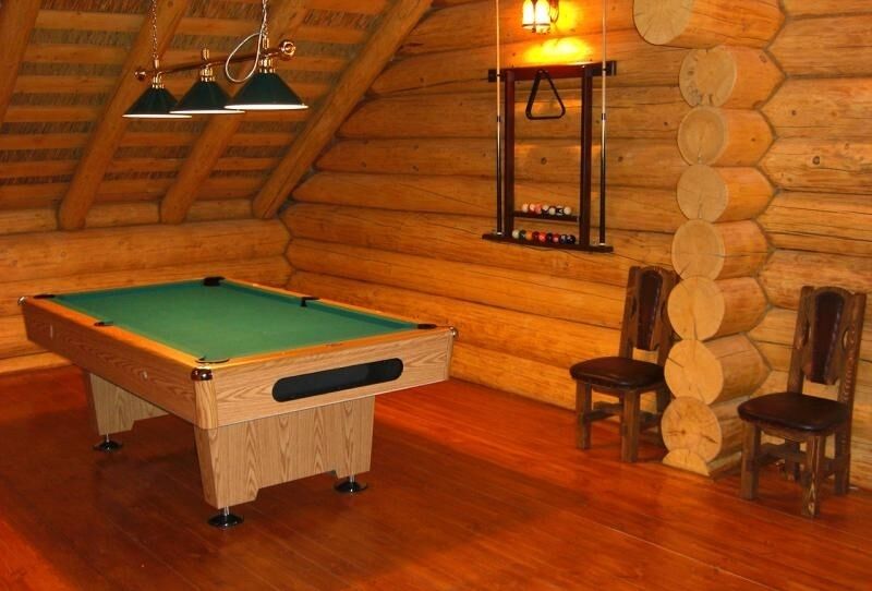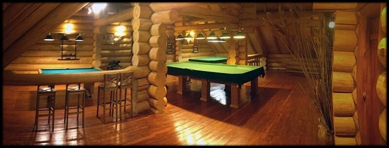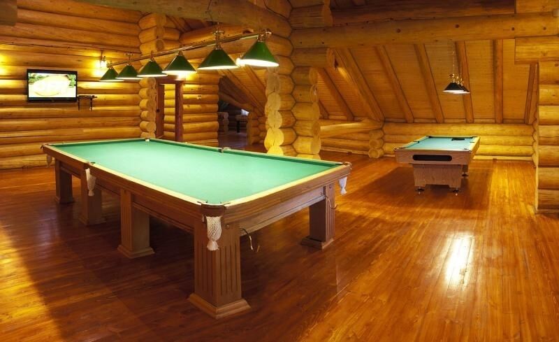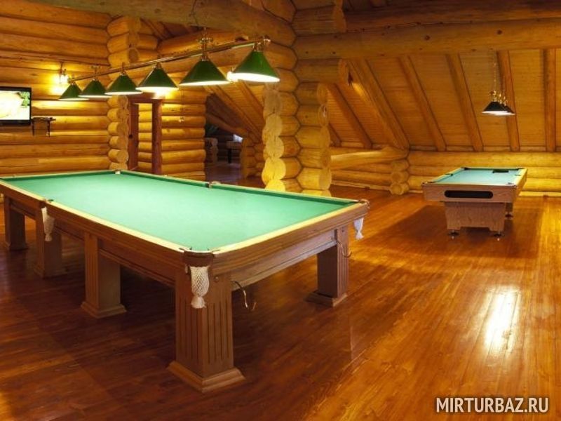 Бильярдный зал с русскими 12-ти и 10-ти футовыми столами и столом для игры в американский пул.