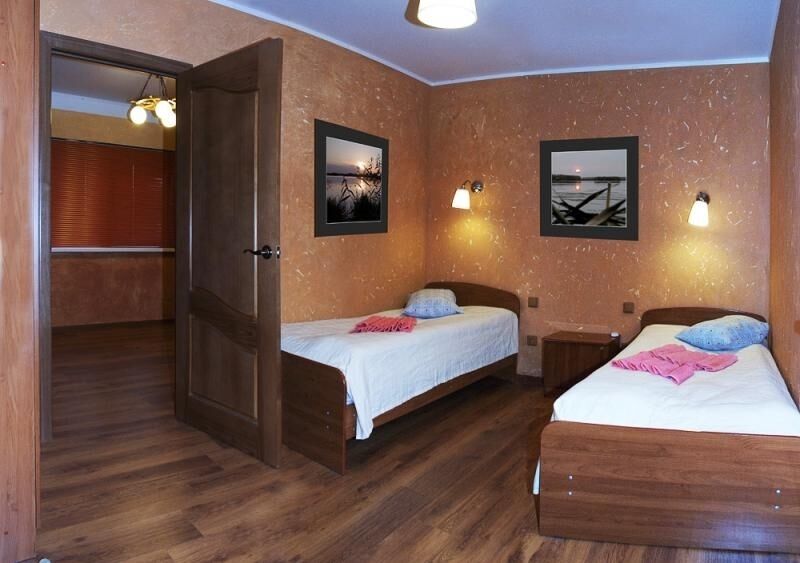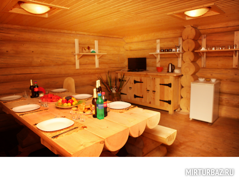 Для постояльцев оборудованы комфортабельные дома с собственной сауной. Разместиться можно, как вдвоем, так и большой компанией на 8 человек. Номера представлены классом «Люкс», «Стандарт» и «VIP». На территории есть парковка. Летом можно провести время, сидя в деревянных беседках, рядом мангалы для приготовления вкусных блюд из рыбы и мяса. Есть большой бассейн, оборудована зона для отдыха всей семьи. Можно покататься на лодке, катамаране в летнее время, а зимой – на снегоходах, коньках и лыжах. К вниманию гостей бильярд, настольный футбол, карты, дартс, шашки, шахматы, домино и лото. Помимо саун в домиках, есть большая баня, оборудованная системой караоке, спутниковым ТВ. Общая вместительность – 12 человек. Есть выход к песчаному пляжу, где в летнее время можно покупаться в реке/