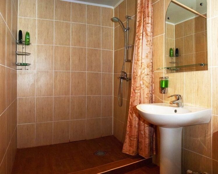 Проживания в 12 номерах коттеджей класса "А". На входе: крыльцо с навесом, оборудованное подставкой под удилища и местом для курения со скамьей. Холл: морозильная камера (для глубокой заморозки рыбы и дичи), меблированная прихожая. Гостиная: раскладывающийся диван, журнальный столик, холодильник, спутник TV,чайник с набором посуды. Спальня: две комфортные кровати (ширина 100см), прикроватная тумбочка, шкаф для одежды, кондиционер. Ванная комната с душевой.