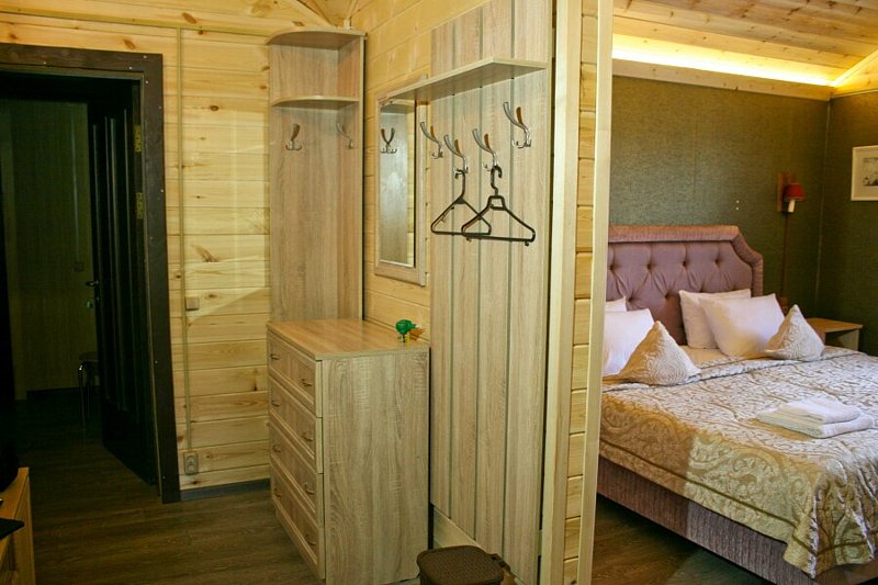 Двухкомнатный трехместный номер, односпальная кровать находится в мансарде. двуспальная - в основной комнате. Кухня располагается на первом этаже.