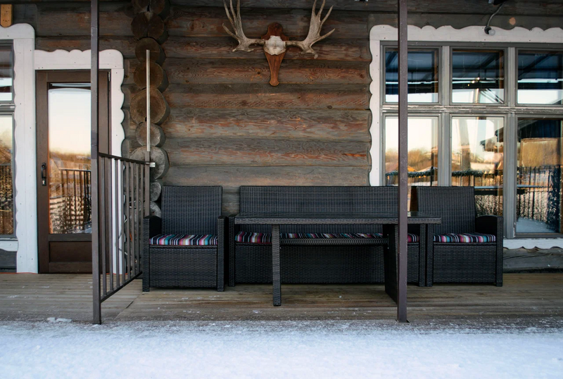 Две террасы — одна на втором этаже для тихого отдыха, загара, медитаций. Вторая прямо на берегу реки с шикарным видом и выходом из гостинной-столовой и Люкса, меблирована обеденной зоной и кофейным столиком на 2–3 человека, есть мебель для банкета.