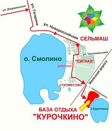 База отдыха «Курочкино» находиться на берегу чистого соленого озера и окружена березовой рощей, всего в 20 минутах от центра города. Здесь Вам понравиться не только свежий воздух и отсутствие шума, но и красота природы, а также разнообразие развлечений, которыми предлагают воспользоваться на базе: баня, сауна, караоке, рестораны, кальяны и уютные номера.
