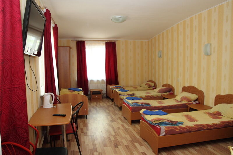 Кровати, стол, стулья, санузел в номере, санузел в блоке.