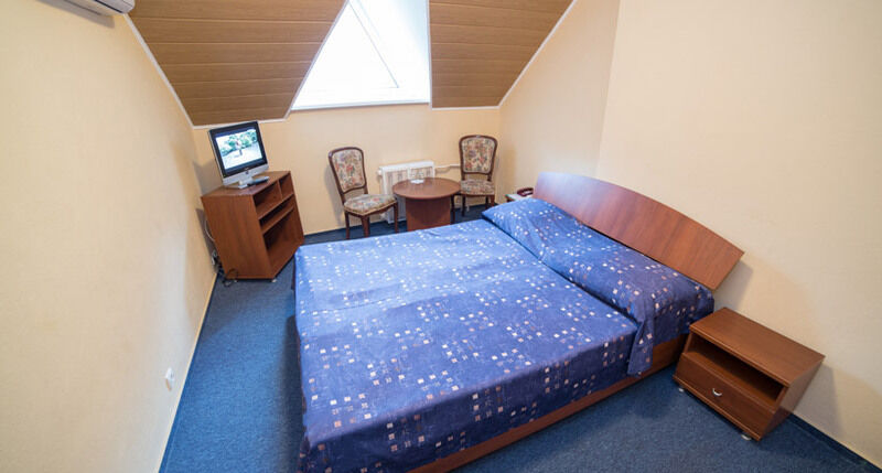 Здесь Вам будет предложено проживание в комфортабельных номерах, которые представлены такими категориями: доступный, стандартный, мансардный, люкс первой и второй категорий, коттедж. В стоимость проживания включены завтраки. Кроме того, Вы сможете отведать вкусные блюда и интересные напитки в ресторане, баре, на летней кухне.