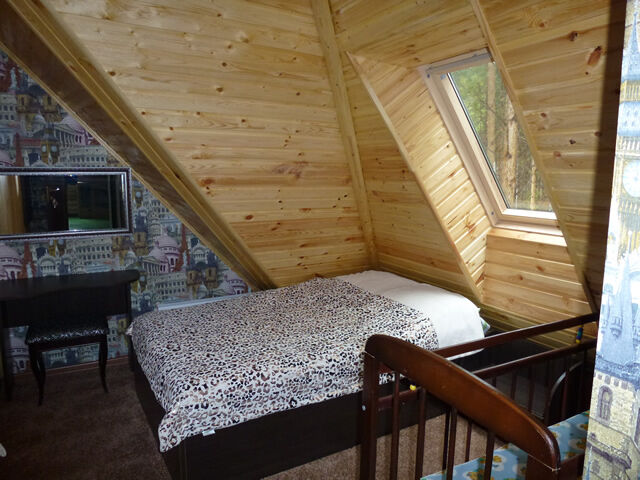 Уютный бревенчатый двухэтажный дом-коттедж с баней и беседкой. Неподалеку, для желающих уединиться, расположена скамейка «для влюбленных». Территория коттеджа огорожена забором, есть охраняемая парковка. Беседка с мангалом.