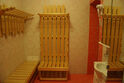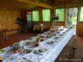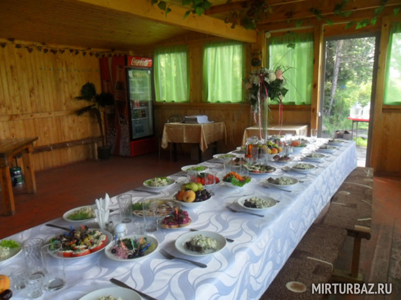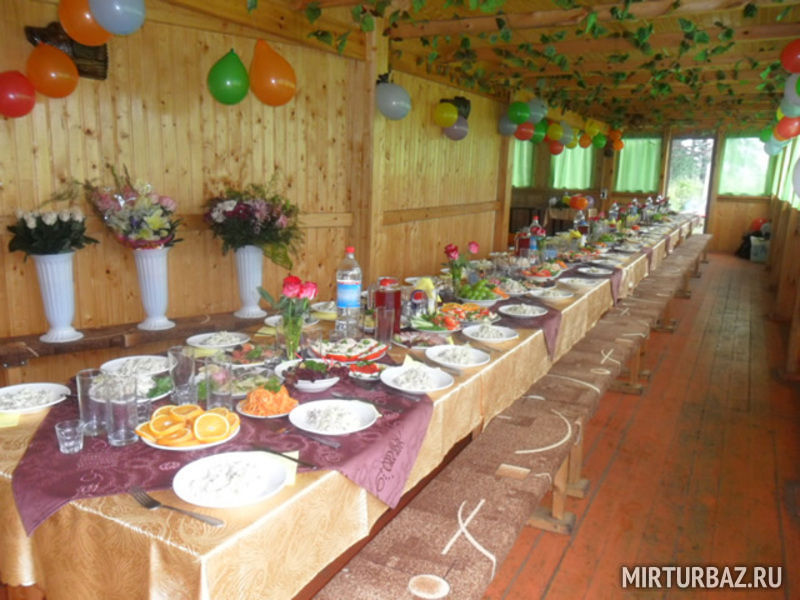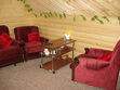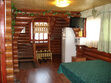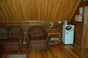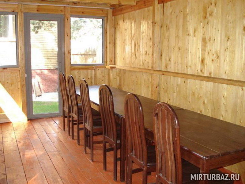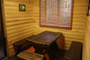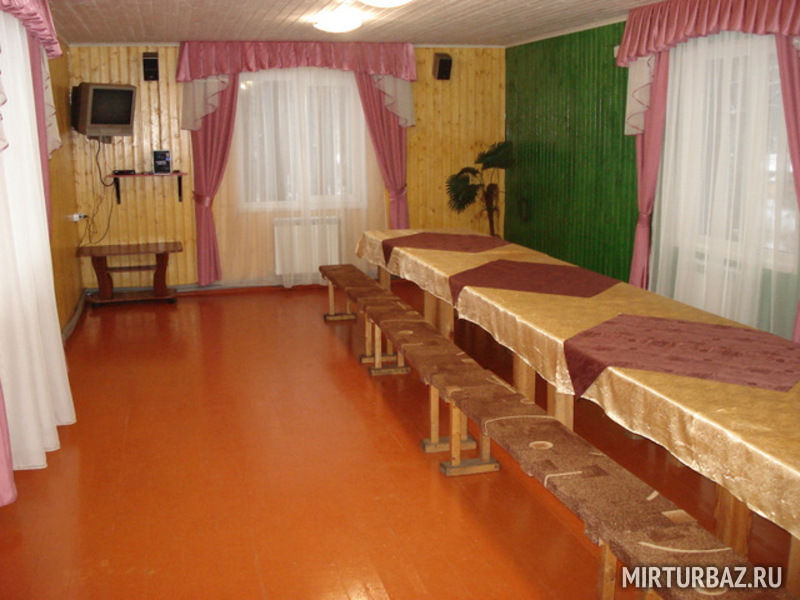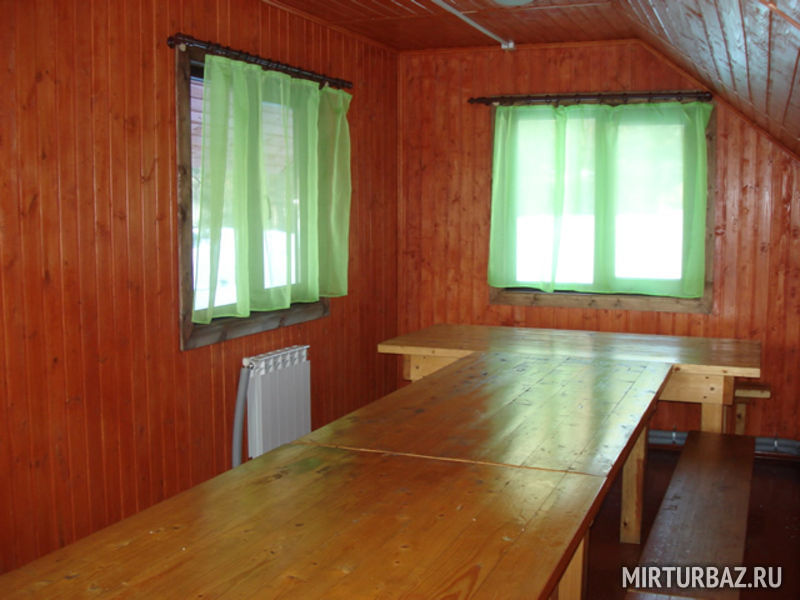 гостевая комната со столом и скамьями, а также спутниковым ТВ;
