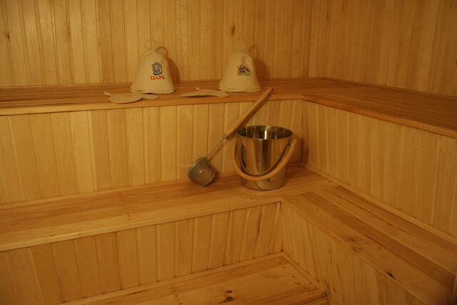 Баня-сауна с банкетной комнатой, душевой, бассейном, спутниковым TV.