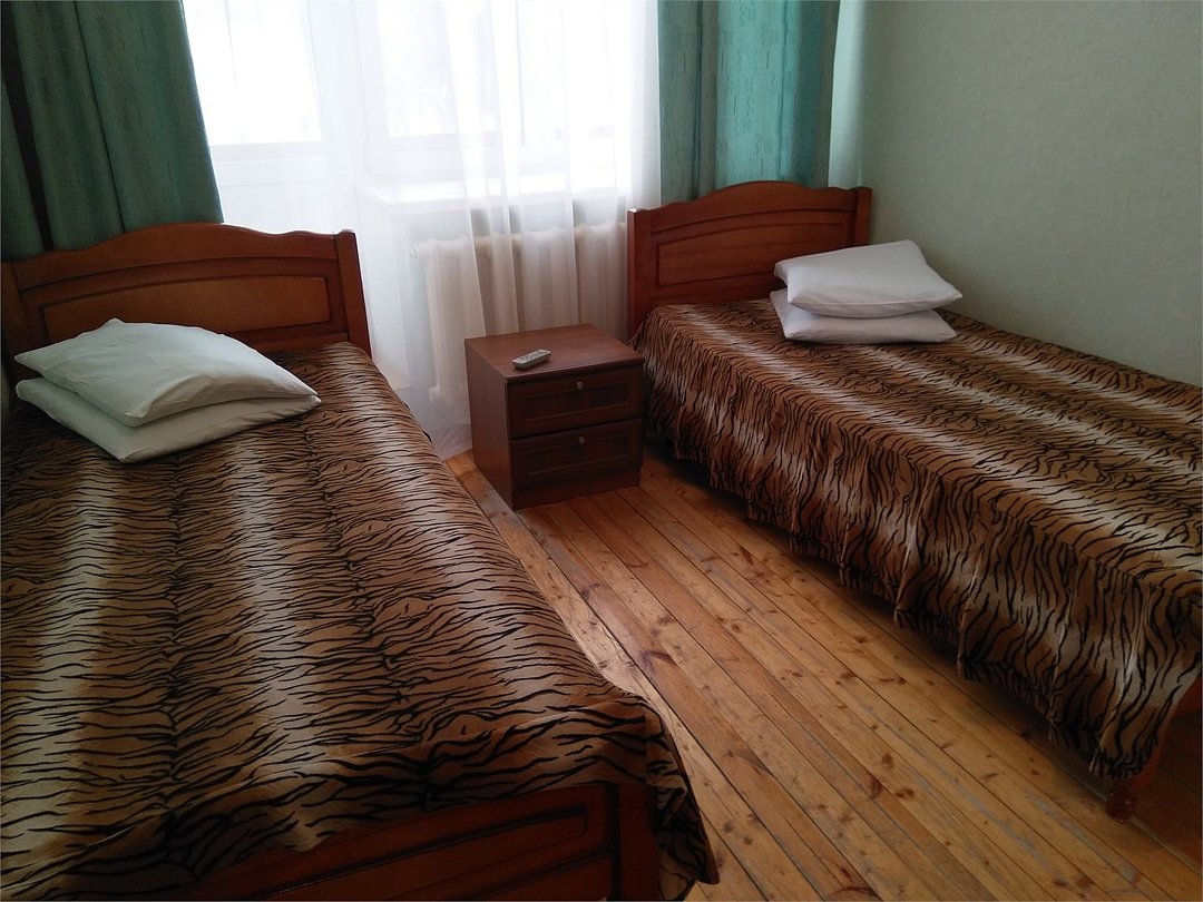 В номере имеется горячая и холодная вода, с/у, четыре раздельные кровати.