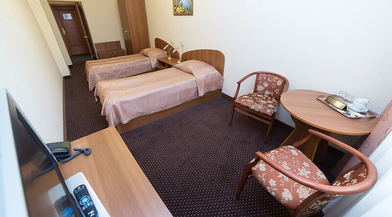 В номере две односпальные кровати, телевизор, телефон, холодильник, кондиционер, средства личной гигиены. Ванная комната с ванной или душевая кабина. Чайник и фен предоставляется бесплатно.