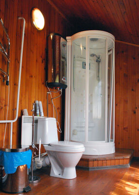 Это баня-сауна, которая топится из предбанника дровами. Есть стол и лавки для отдыха. санузел и душевая с «опрокидом» холодной водой.