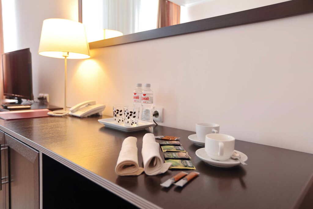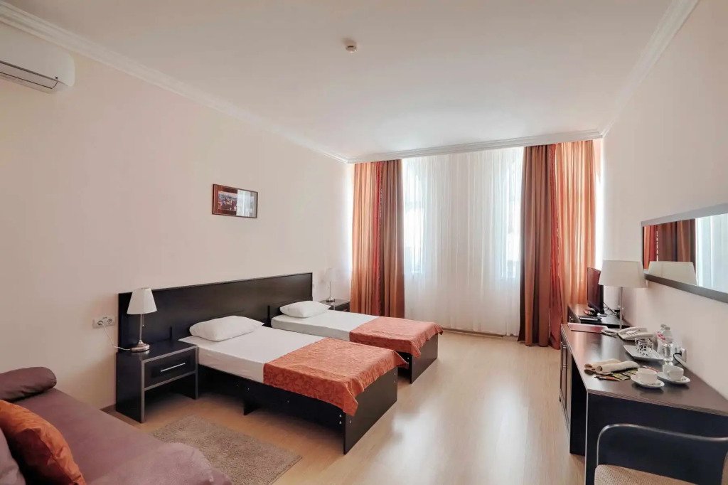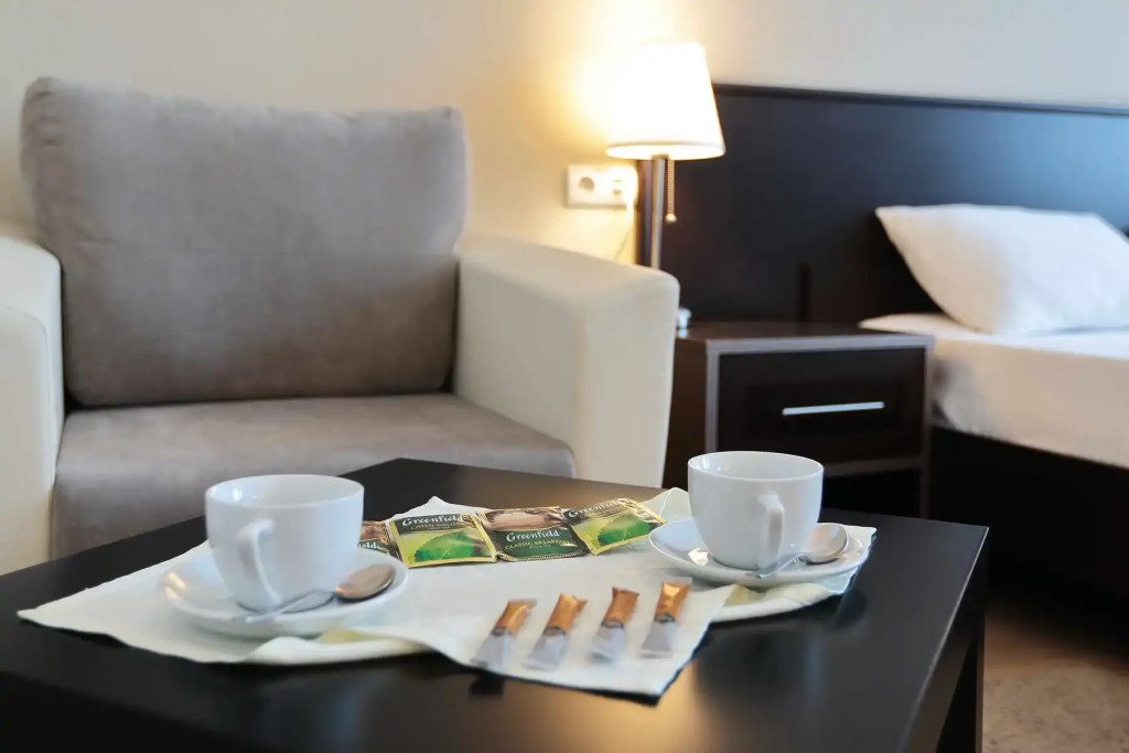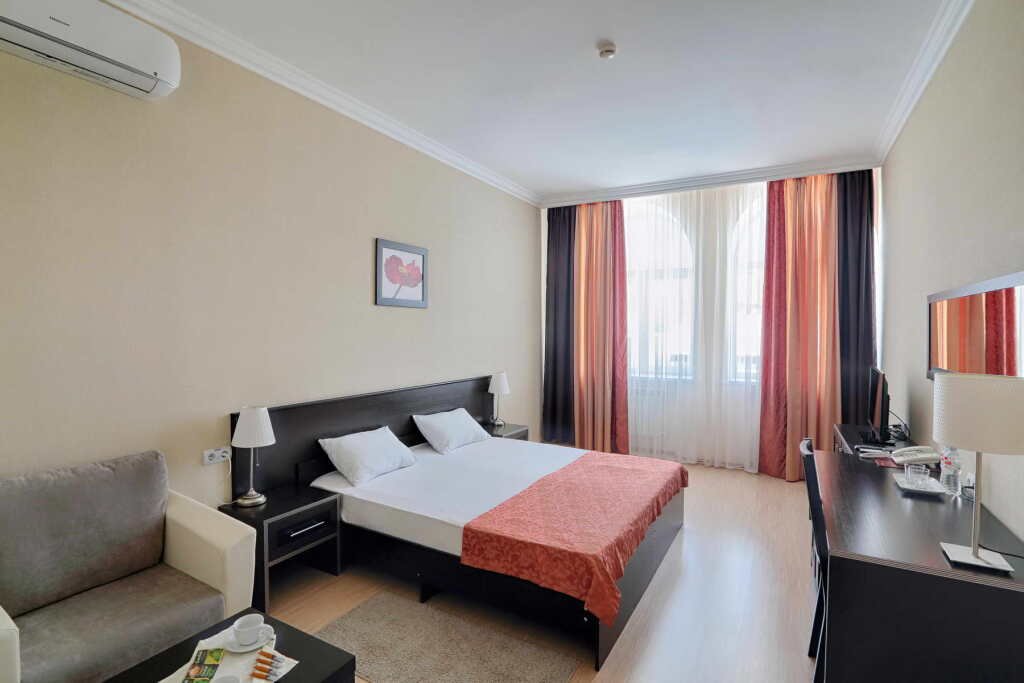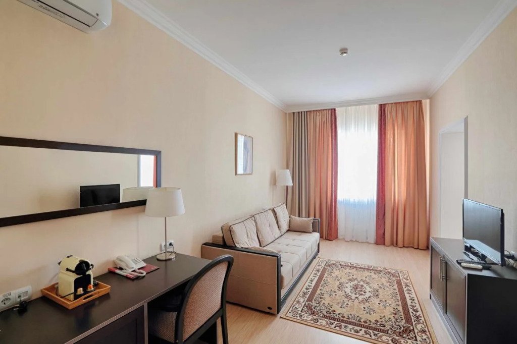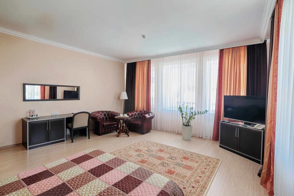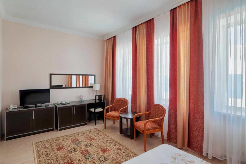 В номере вы найдёте телевизор. Оснащение зависит от выбранной категории номера.