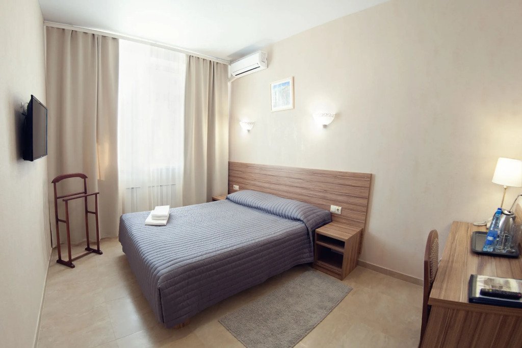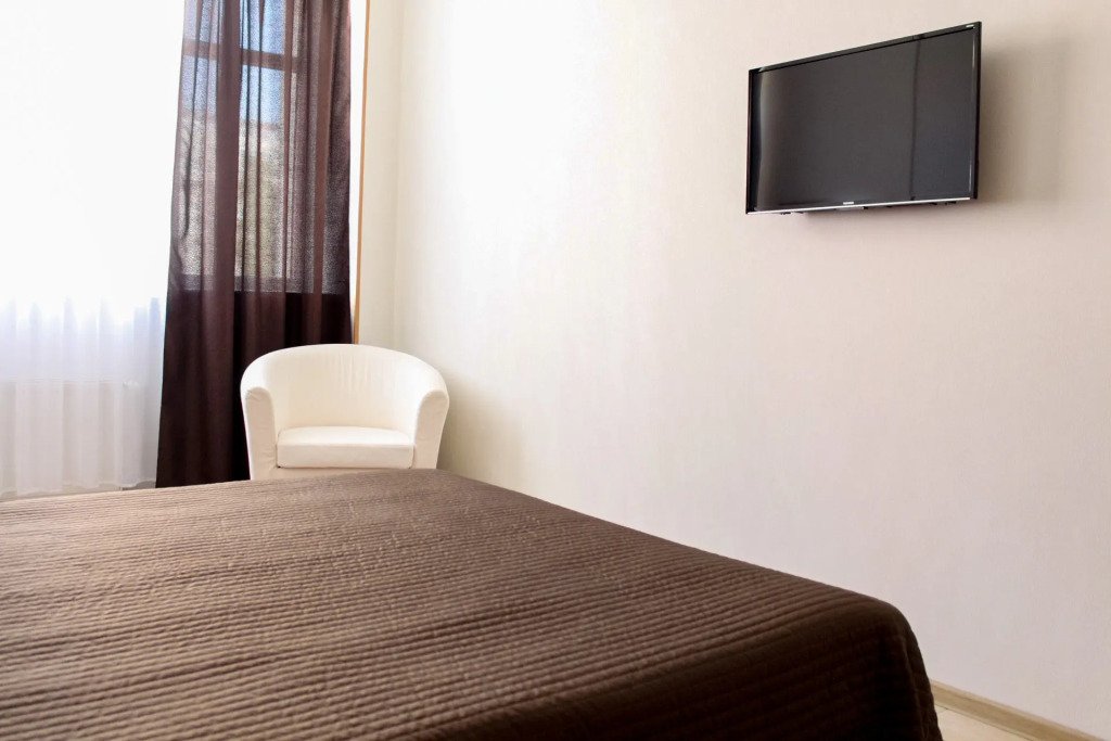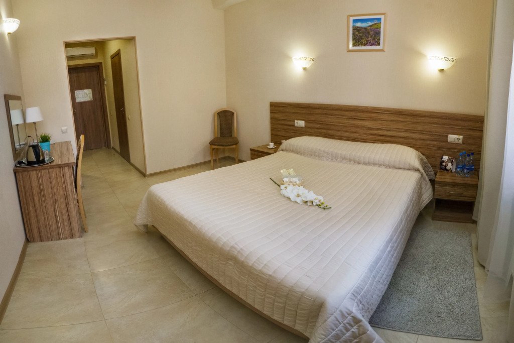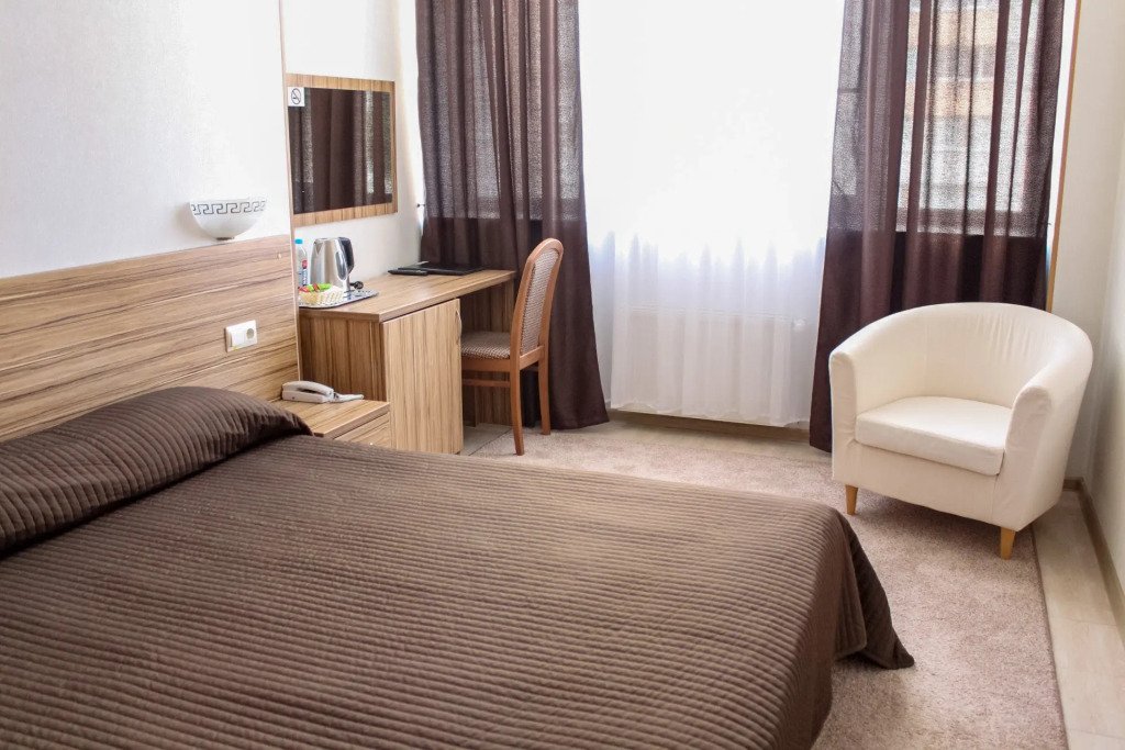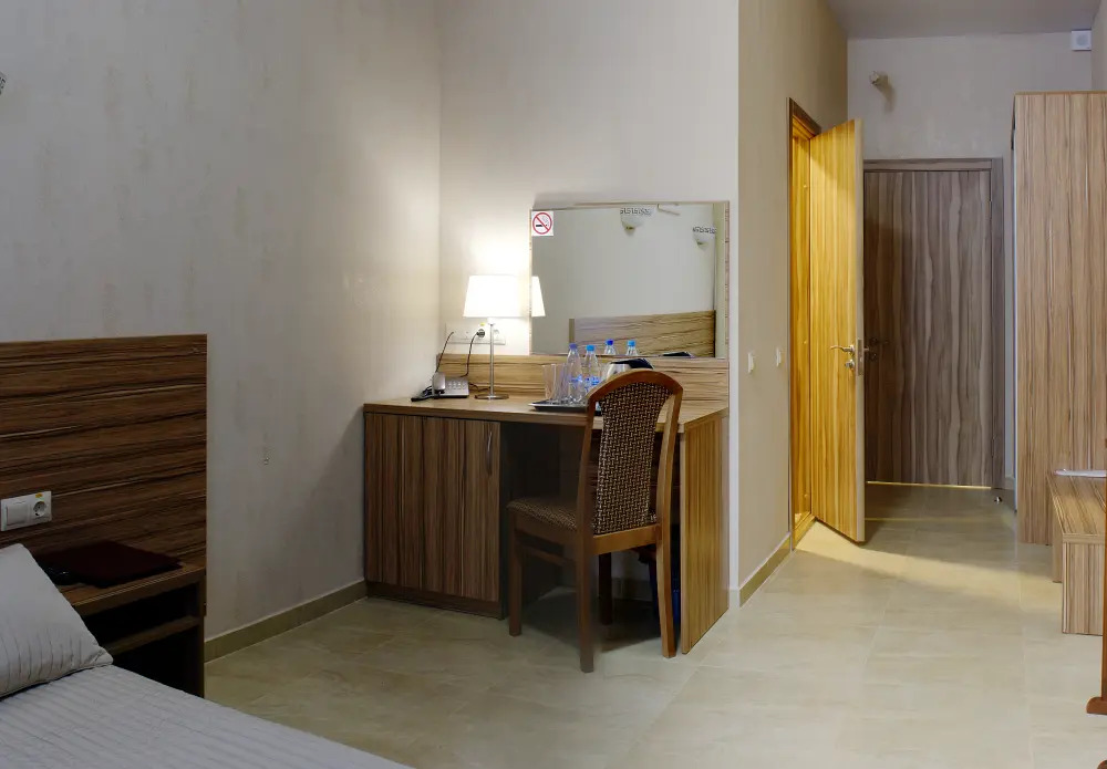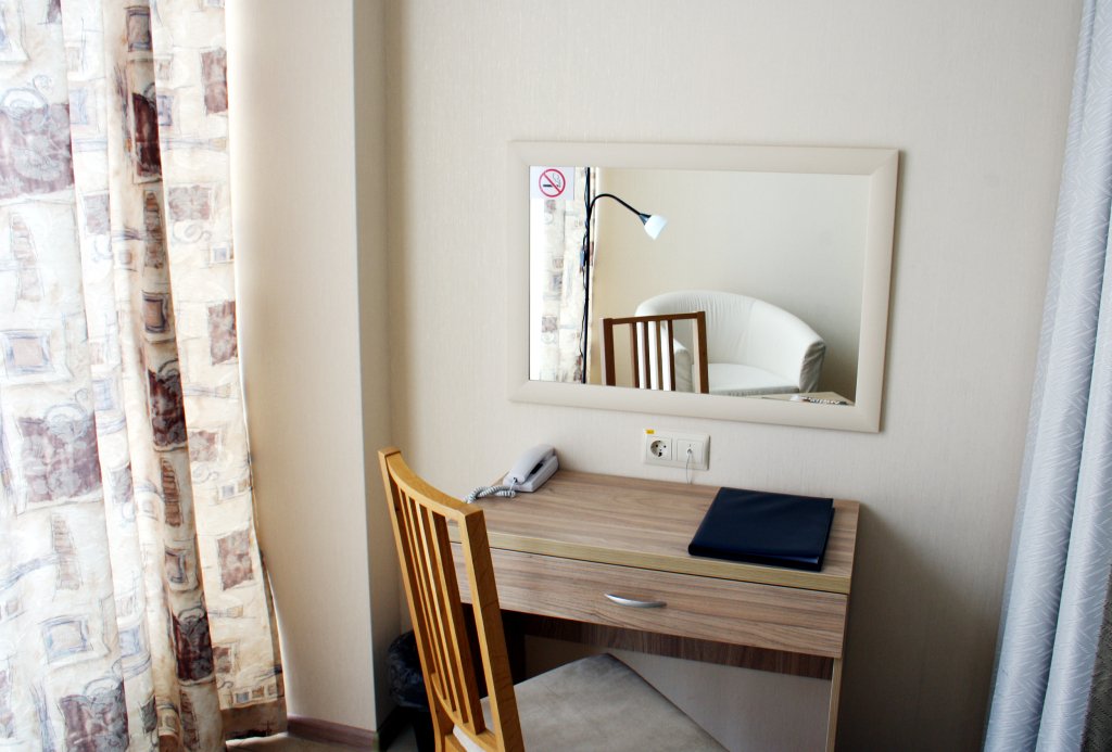 Чтобы вы могли отдохнуть после долгого дня, в номере есть будильник, телевизор, халат и тапочки. Оснащение зависит от выбранной категории номера.