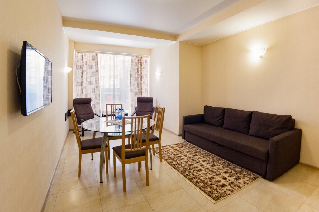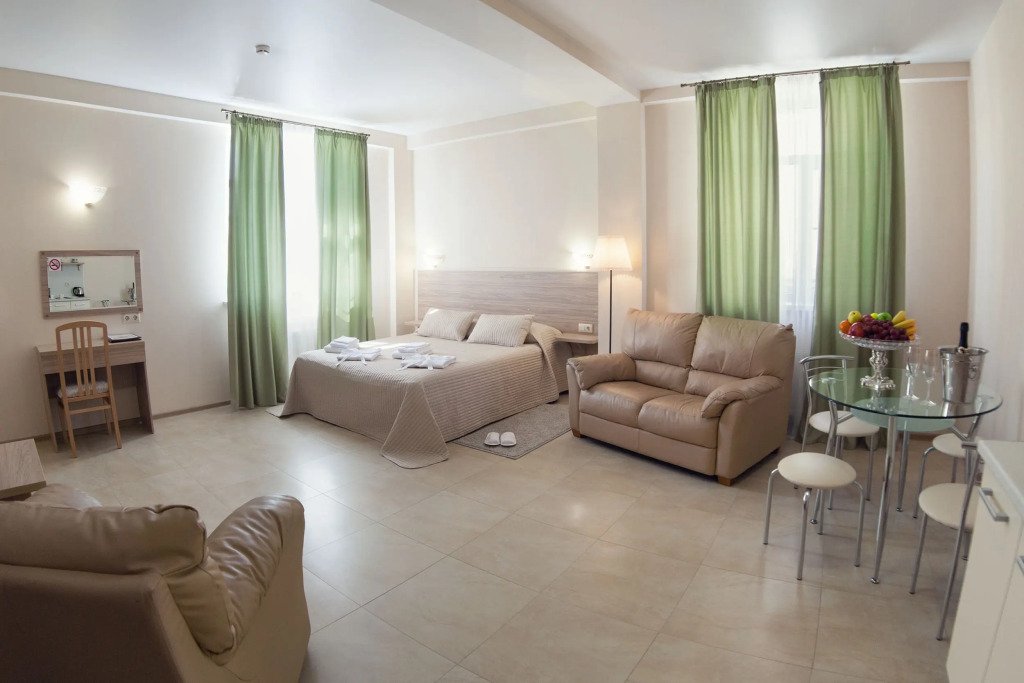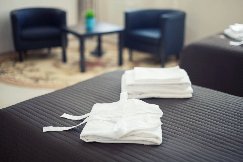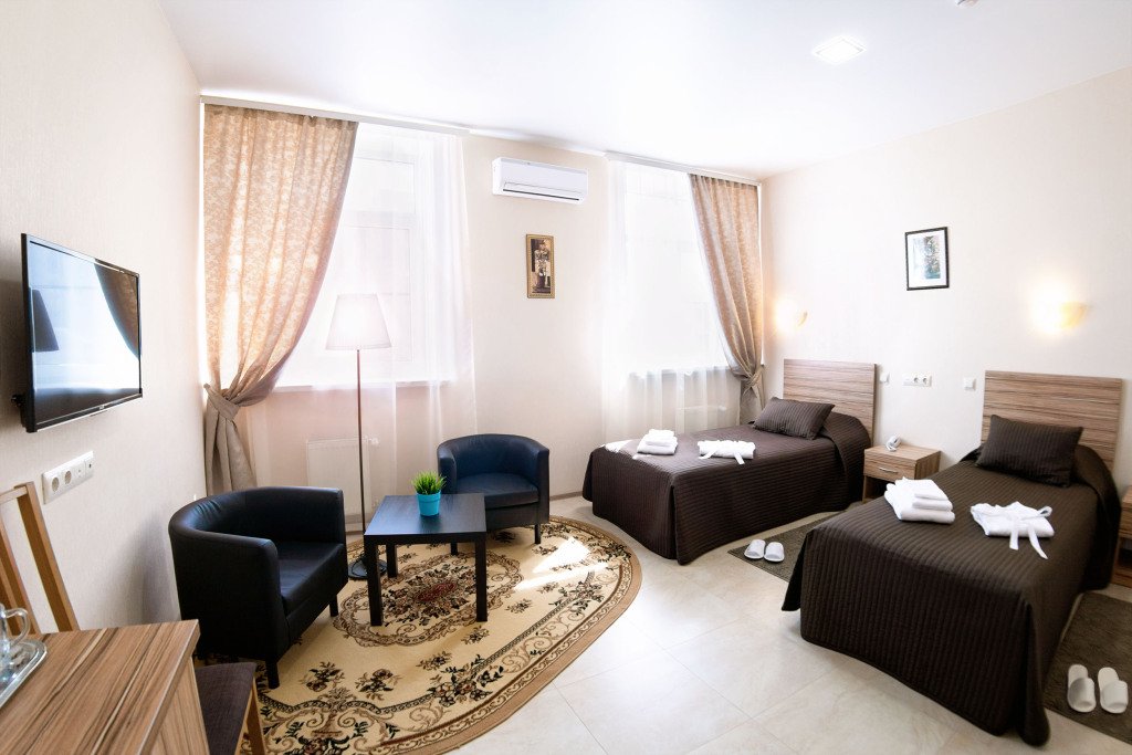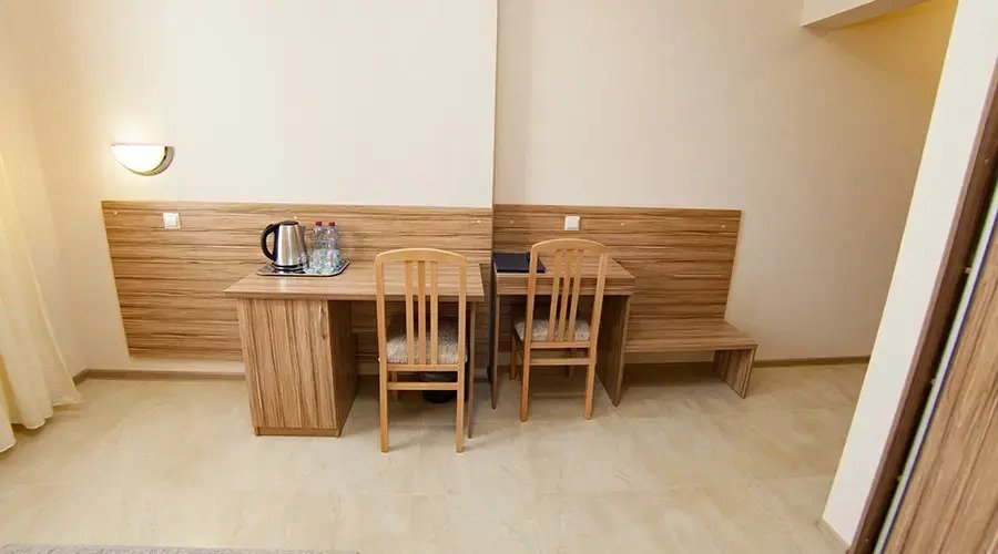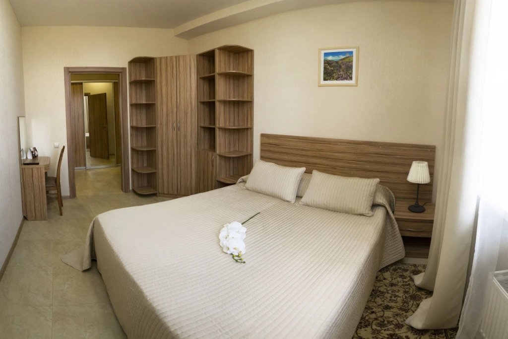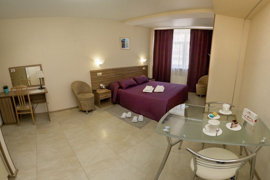 Чтобы вы могли отдохнуть после долгого дня, в номере есть будильник, телевизор, халат и тапочки. Оснащение зависит от выбранной категории номера.