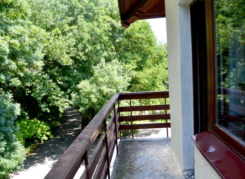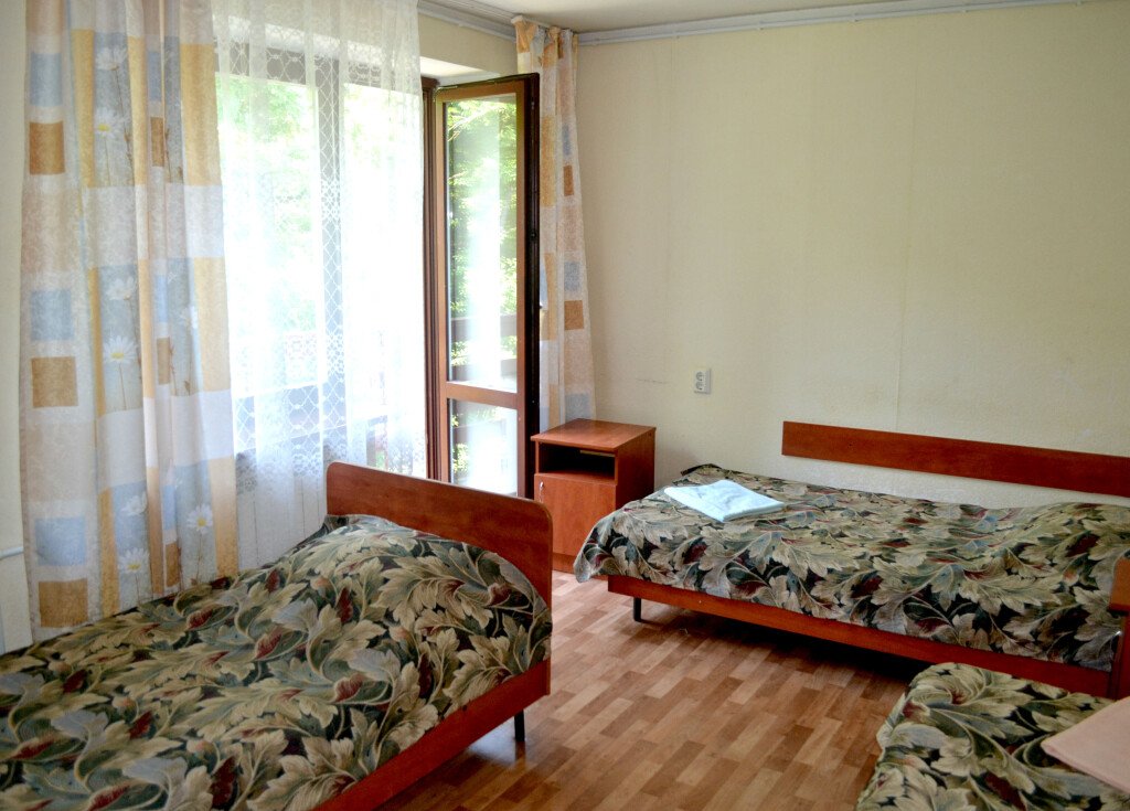 Кровать в общем номере с балконом и с красивым видом из окна