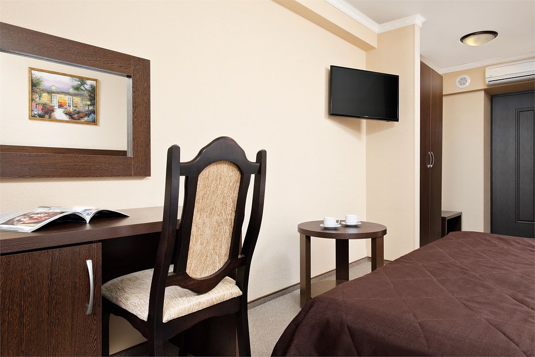 Уютный двухместный номер – идеальный выбор для делового человека прибывшего в наш город. Удобные кровати, письменный стол, плазменный телевизор, холодильник, телефон, WI FI, санузел с душевой кабиной или ванной. Завтрак включен в стоимость номера.Услуги и удобства