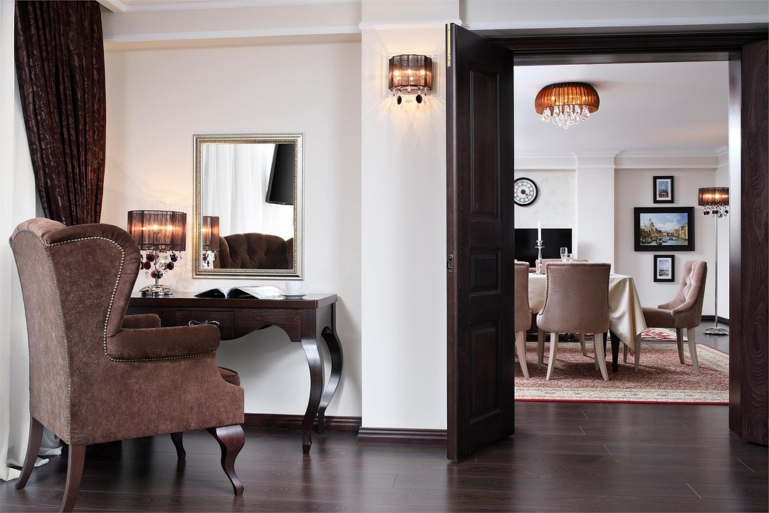 Просторный номер площадью 100 кв.м. имеет все условия для полноценного отдыха, приема гостей и даже плодотворной работы во время командировки. Роскошный дизайн с использованием натуральных материалов, изысканная меблировка и отделка номера выдержаны в едином стиле, который призван доставить вам и вашим гостям высокое эстетическое наслаждение и непередаваемое ощущение комфорта и уюта. Главной изюминкой номера является сауна, джакузи. А впечатляющий вид на город, открывающийся с 16 этажа никого не оставит равнодушным.Услуги и удобства