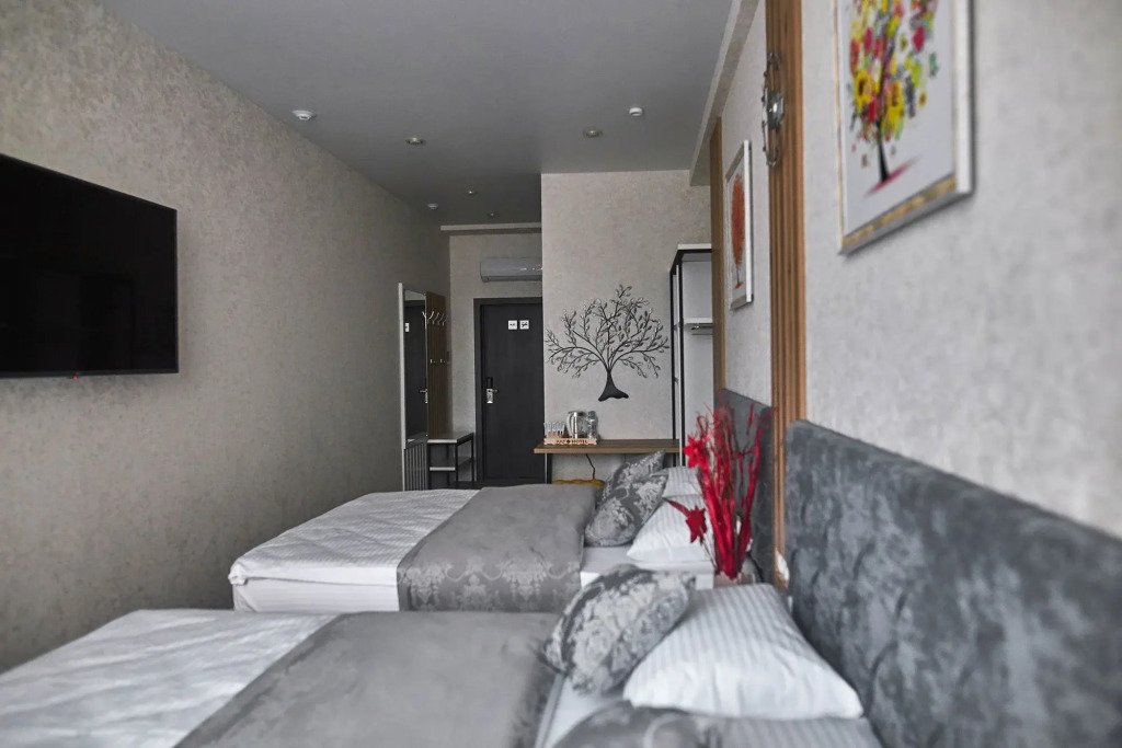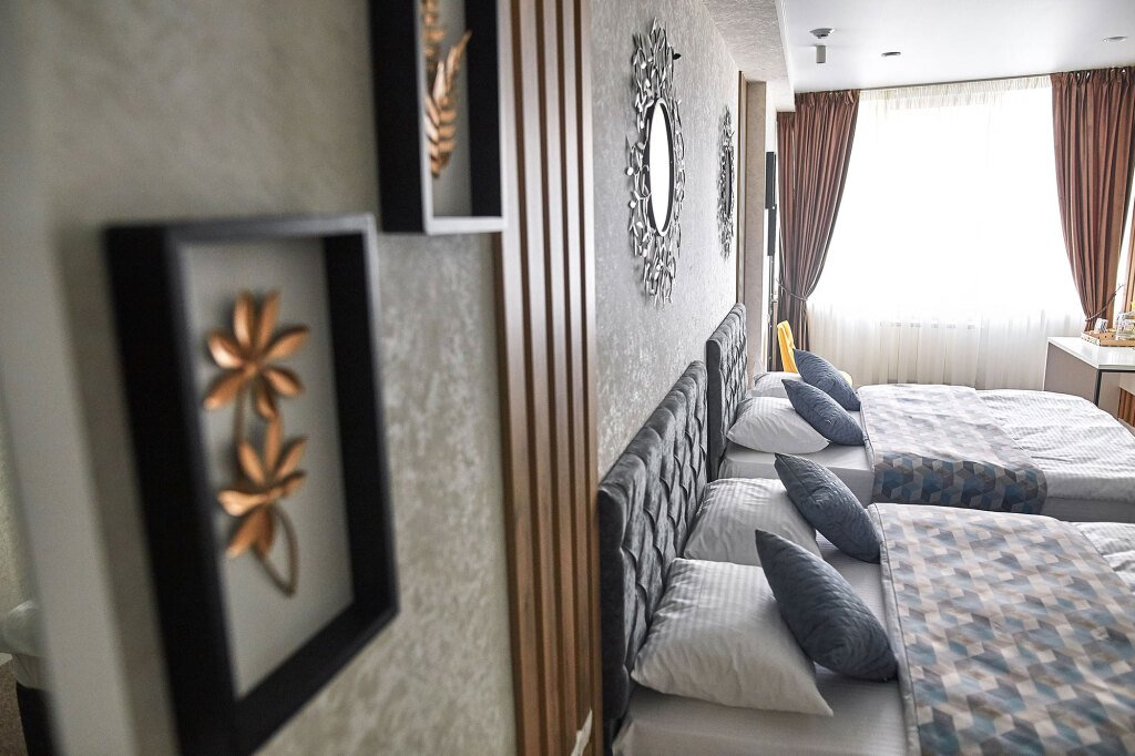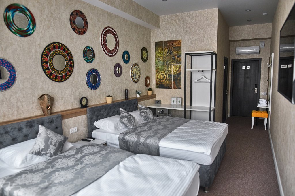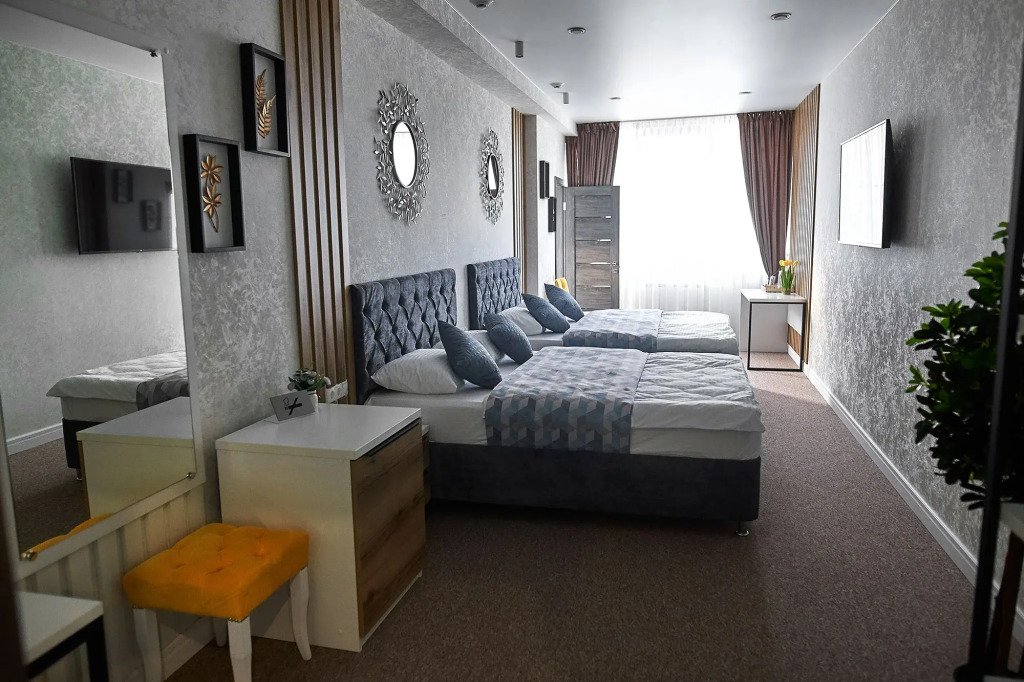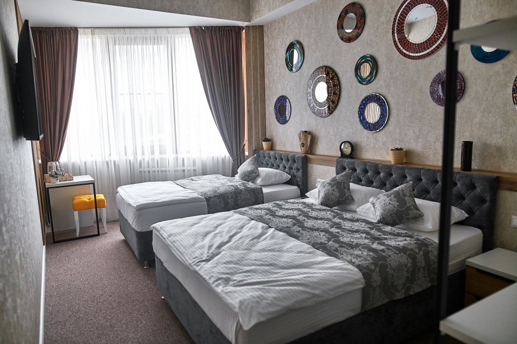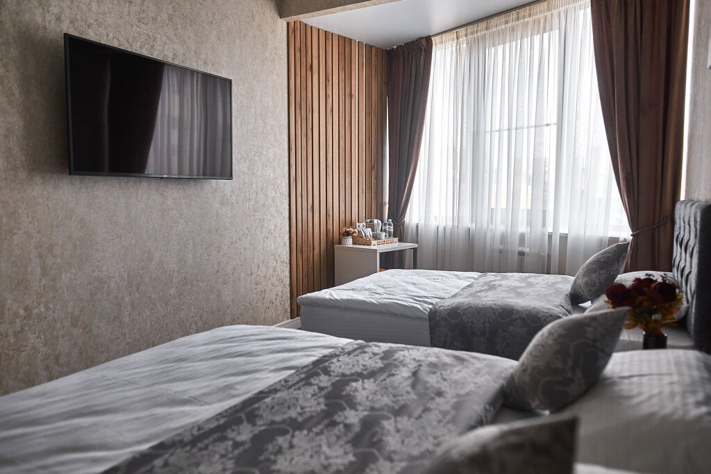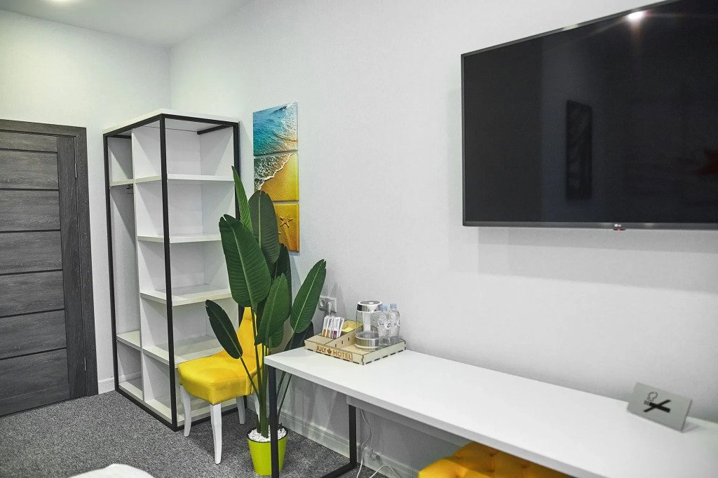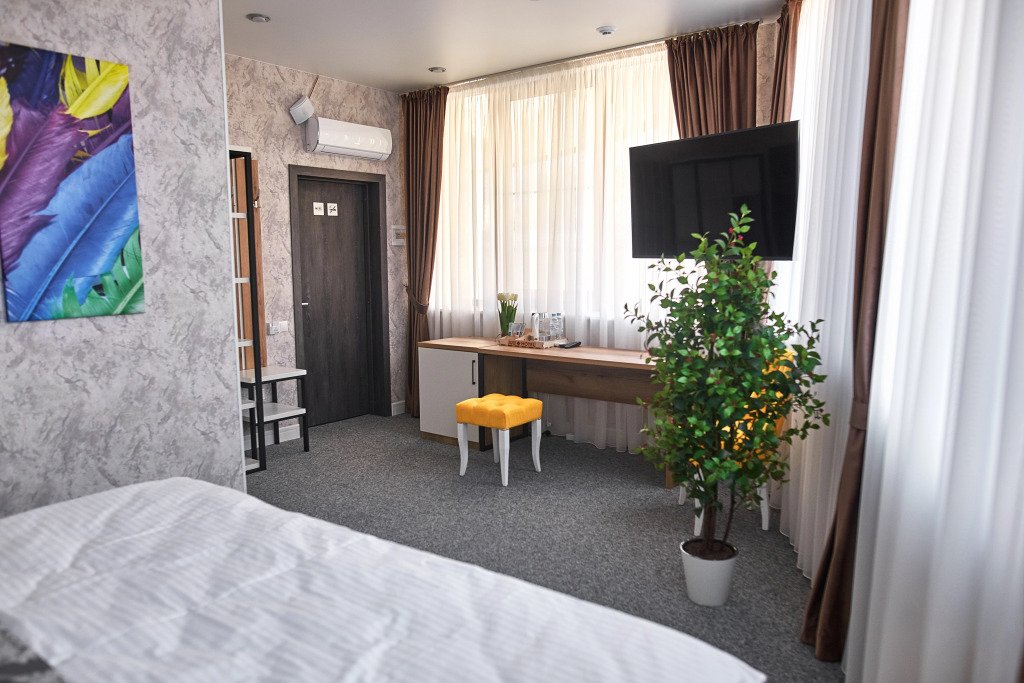 Чтобы вы могли отдохнуть после долгого дня, в номере есть телевизор и халат. Оснащение зависит от выбранной категории номера.