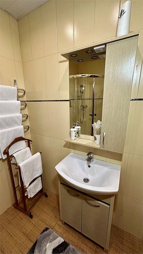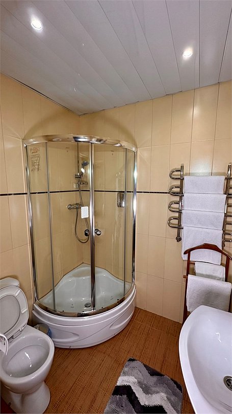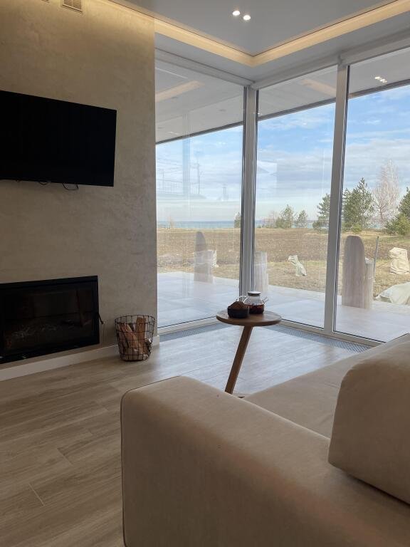 В одной спальне двуспальная кровать, небольшая кровать и шкаф, в другой — двуспальная и небольшая кровати. На кухне сделан теплый пол, на телевизоре онлайн-кино и ТВ. Панорамный вид в три стороны. Также в каждой комнате есть кондиционер. В доме вайфай.