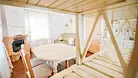 НедостаткиВ домике 1 над столом нет крыши. Не посидеть на улице, если дождь, утром - солнце .
