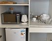 Однокомнатный домик — двуспальная и двухъярусная кровати, телевизор, холодильник, стол, кухонная зона, СВЧ-печь, один санузел. Панорамные окна с видом на озеро, вайфай, онлайн-кино, кондиционеры, теплые полы и посуда.