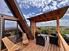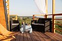 На вашей огороженной территории: терраса 22 м² с видовым гамаком и садовой мебелью, беседка (макс. 15 человек), мангальная зона, чан (доп. плата) и зона кострища. Wi-Fi и усилитель сотовой сети на всей территории.