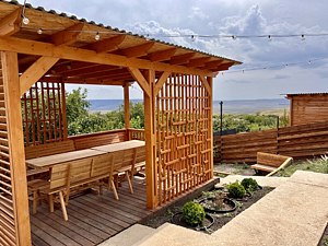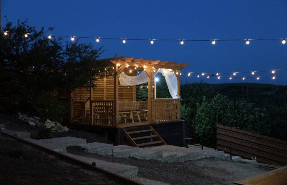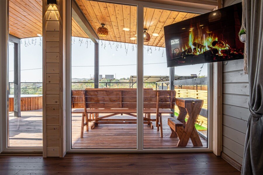 На территории каждого домика есть красивая беседка и терраса, где можно насладиться панорамными видами и отдохнуть у мангала или в банном чане. Для любителей музыки и развлечений предусмотрена профессиональная караоке-система. Барнхаус также предлагает дополнительные удобства: подогреваемую купель с джакузи, где вы сможете расслабиться в чистой воде с мягким освещением.