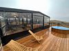 Встроенное джакузи создает особую атмосферу с мягкой подсветкой, превращая каждый момент в волшебное переживание. Купель вмещает от 6–8 человек, что делает ее идеальным местом для дружеских встреч или семейного отдыха.