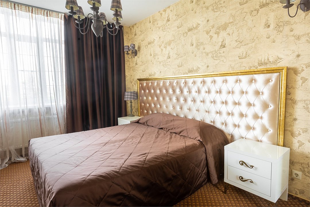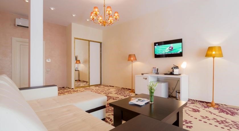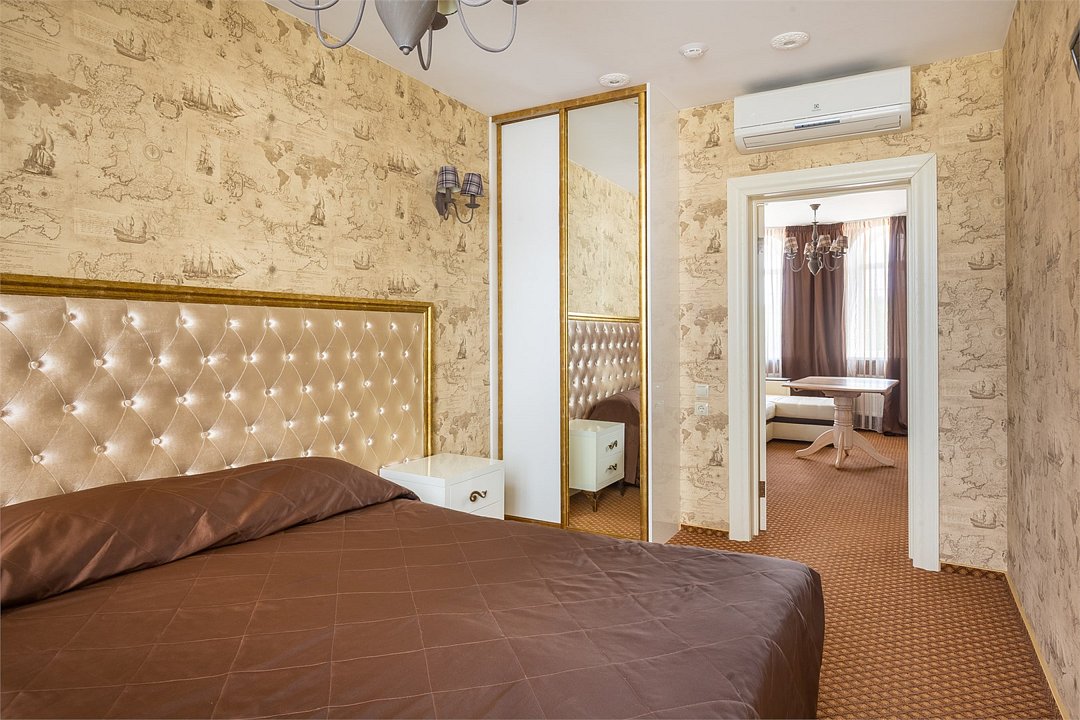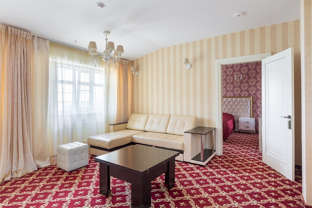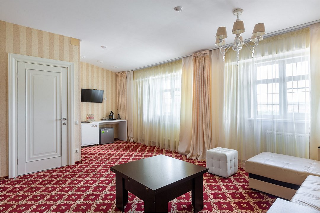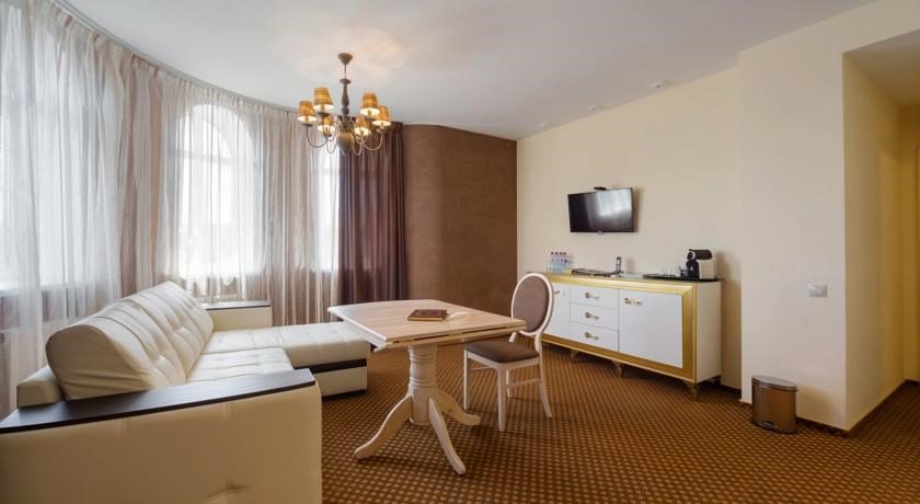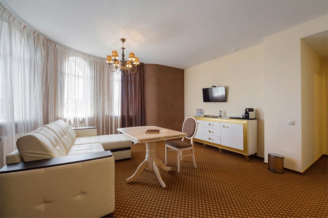 Двухкомнатный люкс гостиничного комплекса «Онегин» - пример современных комфортабельных апартаментов. На площади в 52 м² здесь разместились спальня и гостиная, уникальный дизайн и практичность. Номер подойдет для комфортного размещения 1/2/ 3/4 человек. К большой удобной кровати размером (180х200 см) при необходимости можно добавить детскую кроватку для вашего малыша. Большое свободное пространство гостиной, диван, рабочее место и полноценная ванная комната позволят отдохнуть, спокойно поработать или найти место для игр с ребенком. Плазменный телевизор, кофемашина и отличный завтрак дополнят пребывание в гостиничном комплексе «Онегин».Услуги и удобства