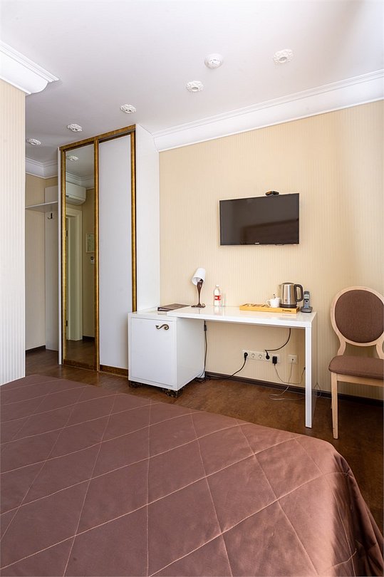 телевизор, спутниковое телевидение, Wi-Fi, интернет, телефон, кондиционер, система климат-контроля, светильник, настольные лампы, фен, электронные замки, ванная комната, душевая кабина, биде, банные принадлежности, халаты, банные полотенца, тапочки, гигиенические средства, косметические средства, двуспальная кровать, две односпальные кровати, две односпальные или большая двуспальная кровать, диван, тумбы, стулья, шкаф для одежды, вешалки, письменный стол, зеркало, мини-бар, письменные принадлежности, свежая пресса, чайный набор, обслуживание номеров, информационная карта, меню, чайник, унитаз, раковина, косметическое зеркало, питьевая вода, ковровое покрытие, отопление, душ, вид на город, стаканы, стул, туалетные средства, сплит-система, внутренний телефон, мини-холодильник, шкаф-купе, номер для некурящих, пуфик, без питомцевВ номере
