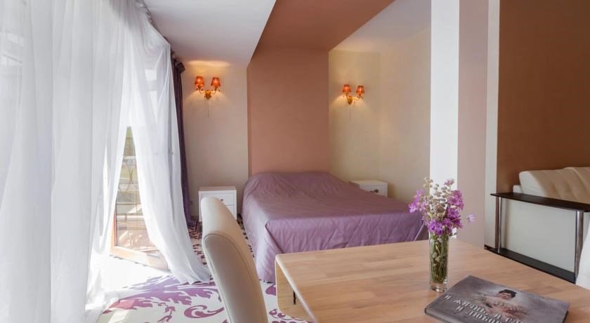 Стильный и просторный номер «Студия» с элегантным дизайном в сочетании с панорамными окнами, из которых открывается вид на город, позволит вам окунуться в уютную атмосферу современных апартаментов . Вы по достоинству оцените удобство кровати и большого дивана, широкоформатного телевизора и кофе-машины. Формат «Студия» предполагает наличие полноценной ванной и столовой зоны, кроме того, при желании вы сможете выбрать вариант с собственным балконом и пить кофе или отдыхать на свежем воздухе, не выходя из номера.Услуги и удобства