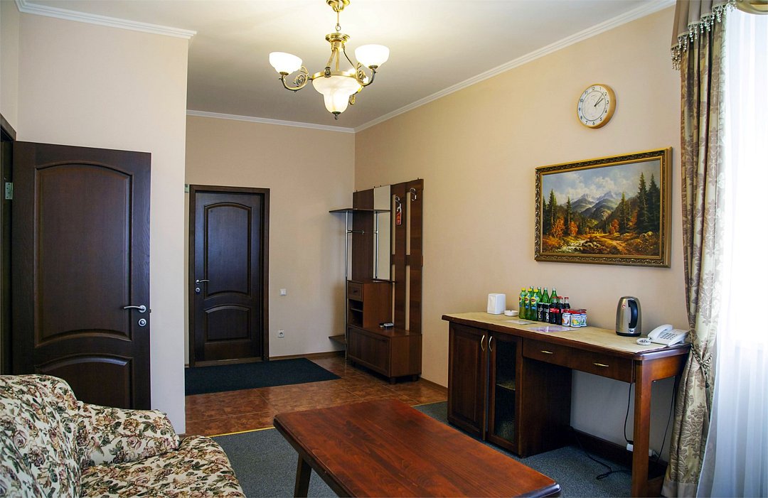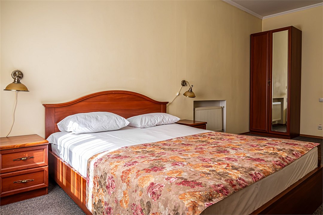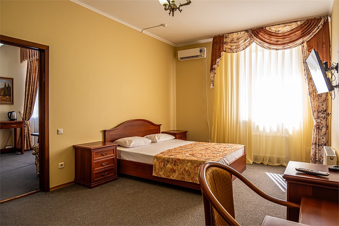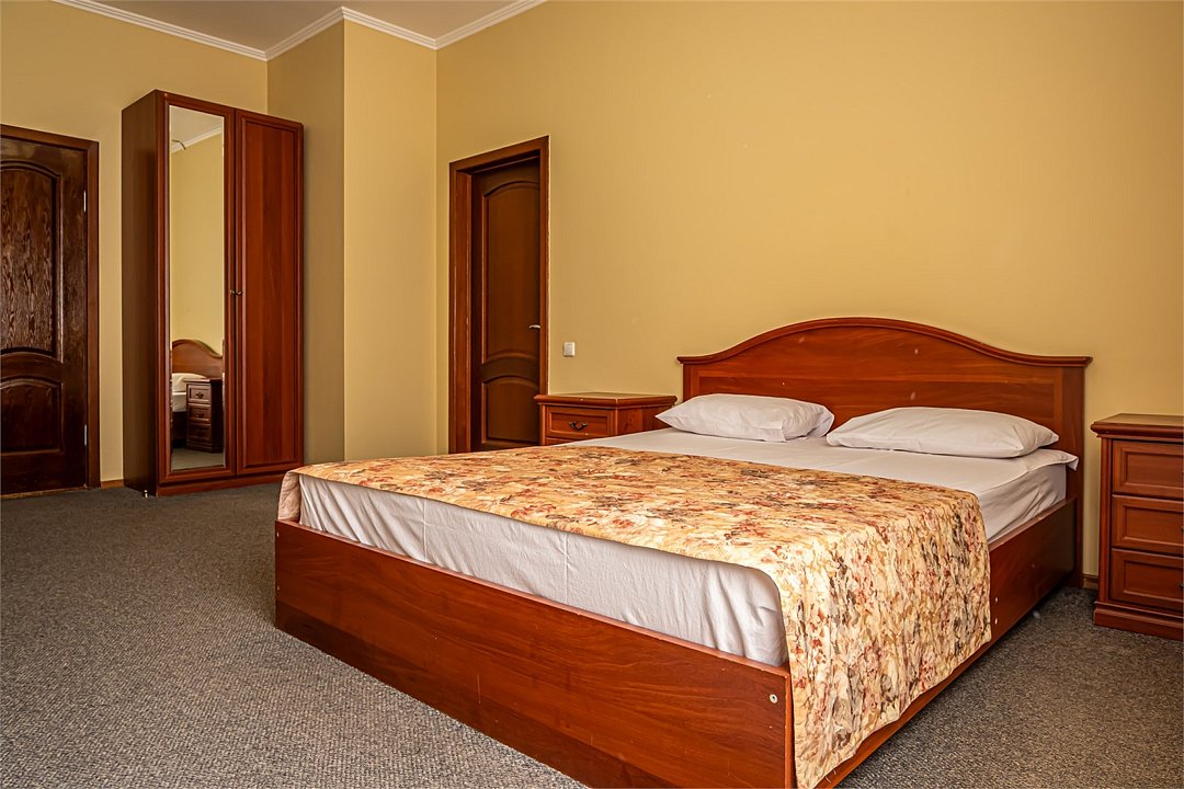 телевизор, спутниковое телевидение, кабельное телевидение, Wi-Fi, интернет, кондиционер, фен, ванна или душевая кабина, тапочки, косметические средства, двуспальная кровать, диван, гардеробная, вешалки, две комнаты, чайник, унитаз, мягкая мебель, душ, вид на город, вид во двор, стол, туалет, сплит-система, цифровое тв, диван-кровать, внутренний телефон, шкаф-купе, рабочий стол, холодильный шкаф, услуги прачечной (платно), частный двор, можно с питомцамиВ номере