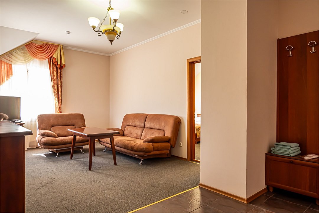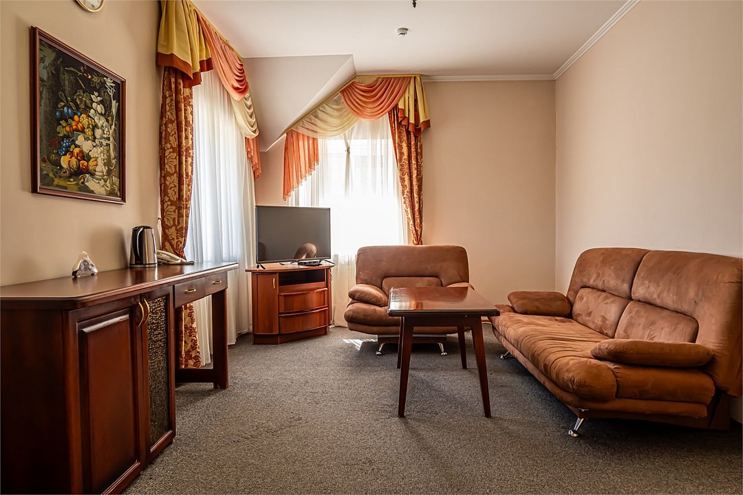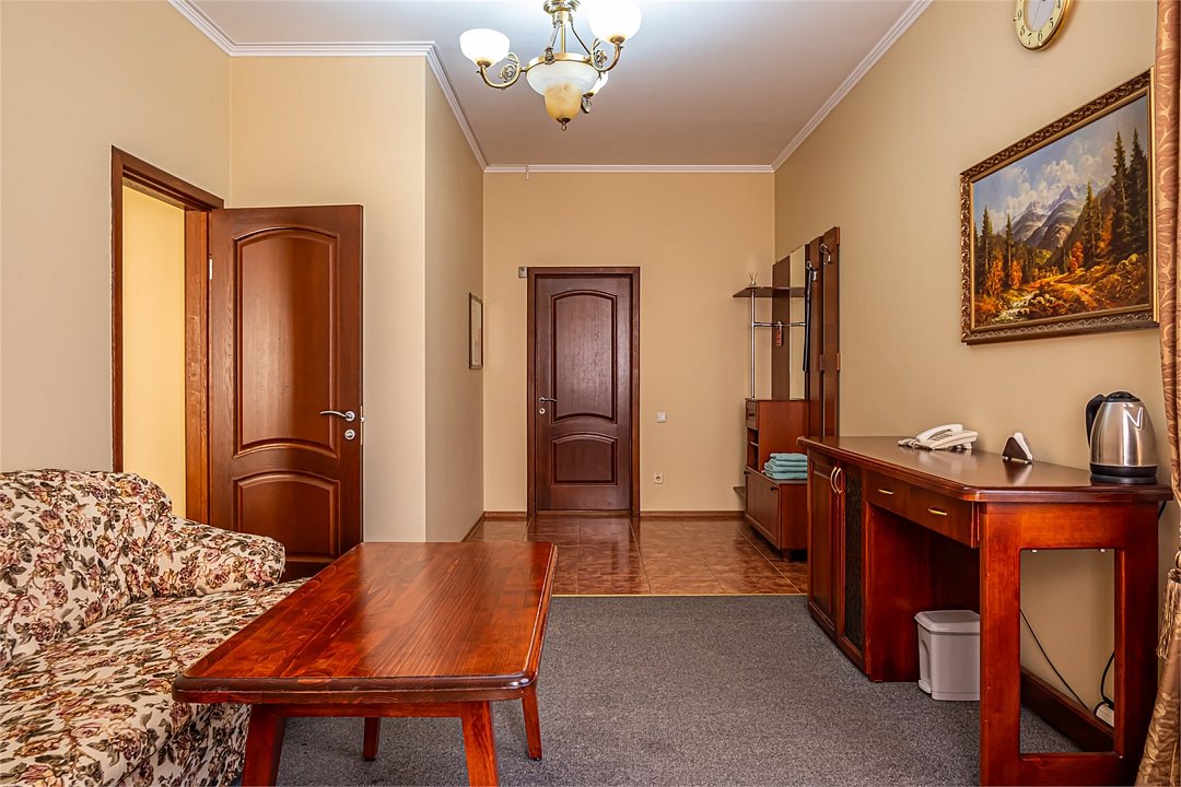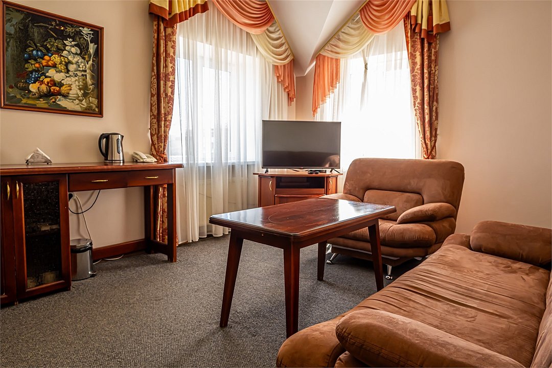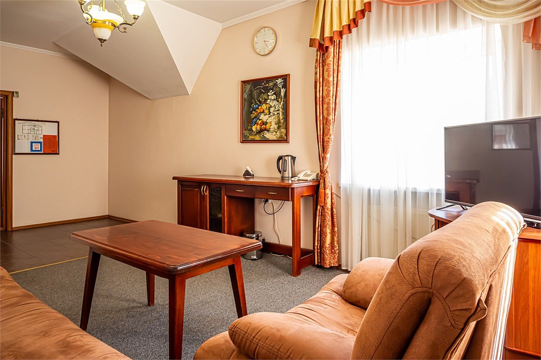 телевизор, спутниковое телевидение, кабельное телевидение, Wi-Fi, интернет, кондиционер, фен, ванна или душевая кабина, тапочки, косметические средства, двуспальная кровать, диван, гардеробная, вешалки, две комнаты, чайник, унитаз, мягкая мебель, душ, вид на город, вид во двор, стол, туалет, сплит-система, цифровое тв, диван-кровать, внутренний телефон, шкаф-купе, рабочий стол, холодильный шкаф, услуги прачечной (платно), частный двор, можно с питомцамиВ номере
