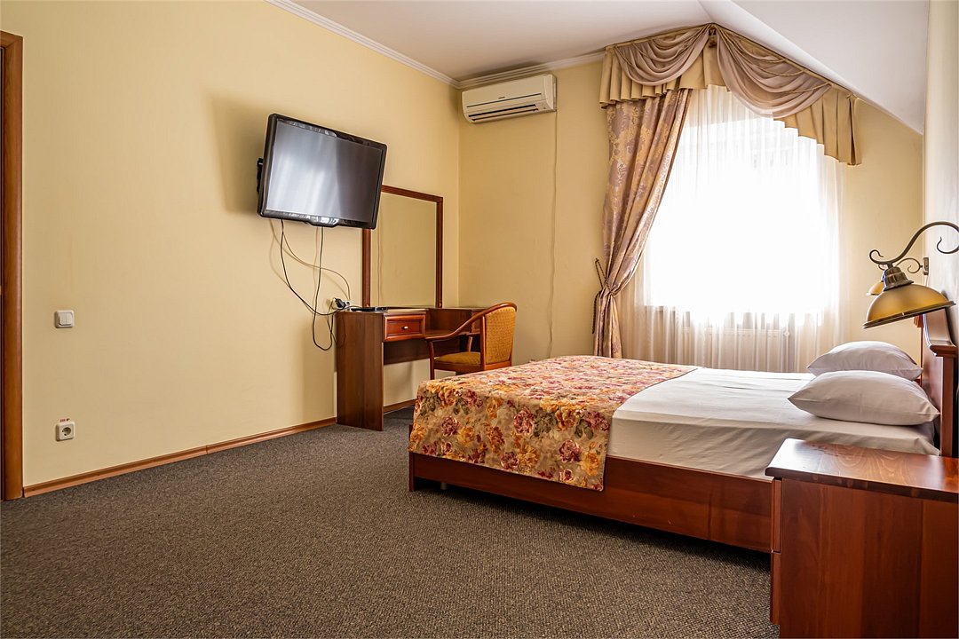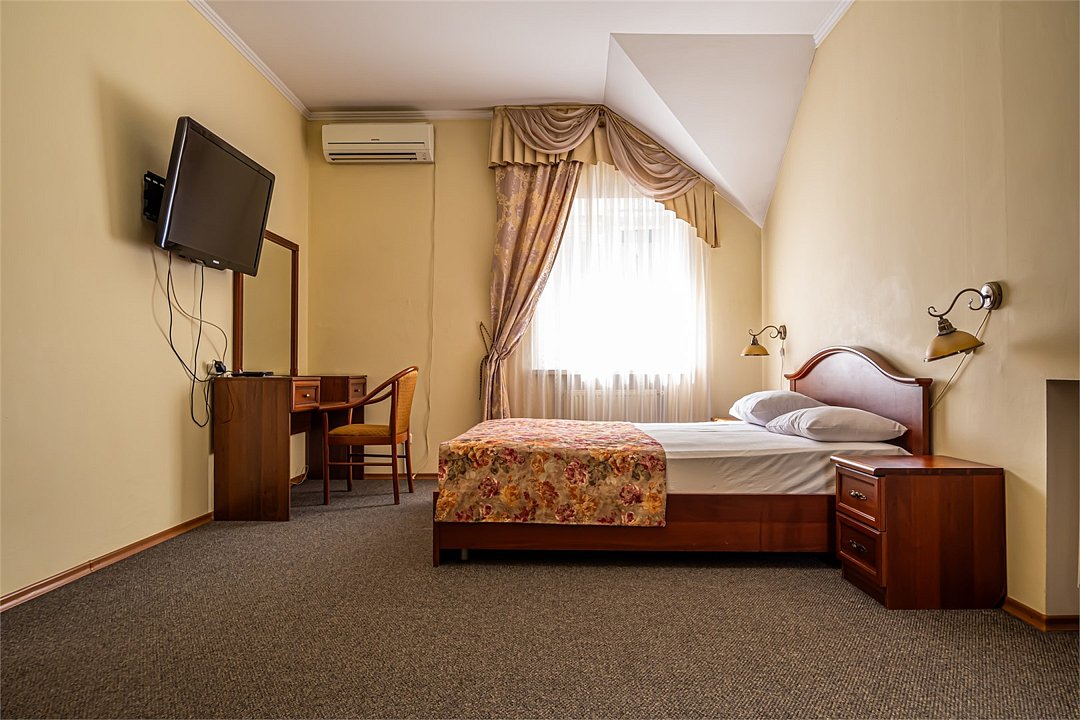 телевизор, кабельное телевидение, Wi-Fi, интернет, холодильник, кондиционер, фен, утюг, душевая кабина, тапочки, косметические средства, односпальная кровать, душ, вид во двор, туалет, сплит-система, цифровое тв, внутренний телефон, мини-холодильник, можно с питомцамиВ номере