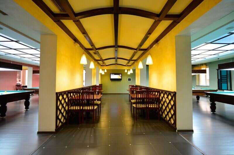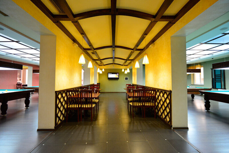 Здесь расположены 4 стола для игры в русский бильярд, а так же, для особых ценителей имеется VIP-зал, выполненный в стиле барокко, вместимостью до 20 человек.