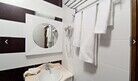 В номере кровать (160х200), прикроватные тумбочки, плательный шкаф, комод, журнальный столик, два кресла, письменный стол, зеркало, ванная комната оборудованная душевой кабиной умывальником и туалетом, телевизор со спутниковым тв, бесплатный WiFi, кондиционер, холодильник, городской телефон, завтрак включен в стоимость номера, махровые халаты, тапочки, средства гигиены, полотенца.