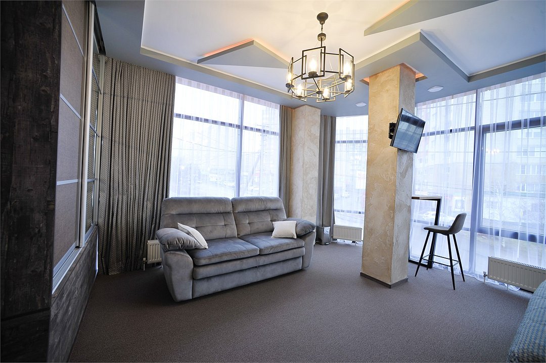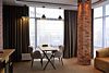 Wi-Fi, кондиционер, фен, утюг, обогреватель, халаты, банные полотенца, гигиенические средства, косметические средства, кровать «King size», стулья, вешалки, обеденный стол, зеркало, чайный набор, обслуживание номеров, чайник, обеденная зона, душ, вид на город, кулер на этаже, стиральная машина и сушилка, туалетные средства, туалет, панорамные окна, раскладной диван, мини-холодильник, шкаф-купе, телевизор со Smart TV, номер для некурящих, без питомцевВ номере