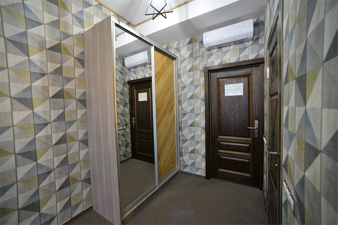 Wi-Fi, кондиционер, фен, утюг, халаты, банные полотенца, тапочки, косметические средства, кровать «King size», гладильная доска, тумбы, вешалки, обеденный стол, зеркало, мини-бар, чайный набор, обслуживание номеров, чайник, обеденная зона, душ, кулер на этаже, вид во двор, стиральная машина и сушилка, туалетные средства, туалет, диван-кровать, шкаф-купе, телевизор со Smart TV, номер для некурящих, без питомцевВ номере