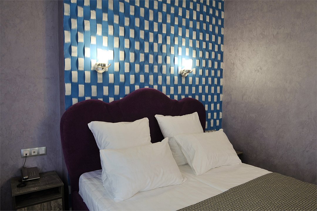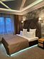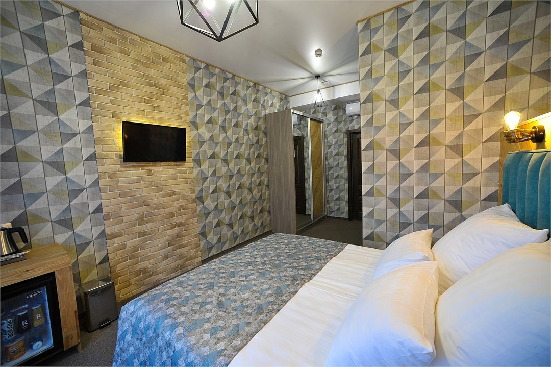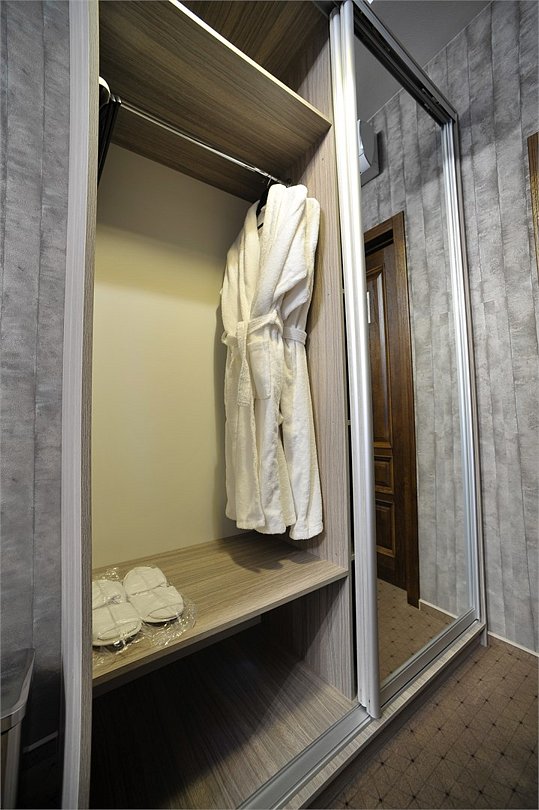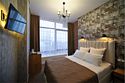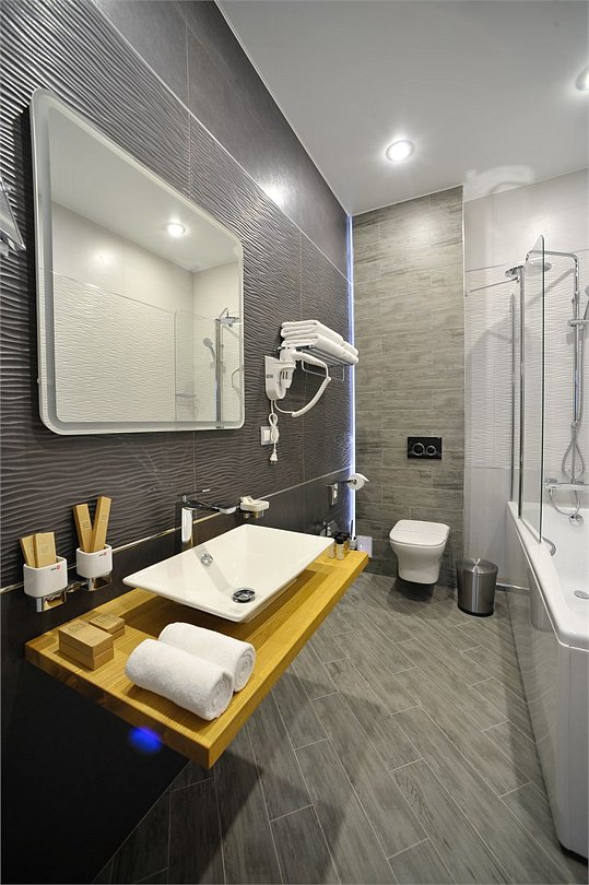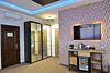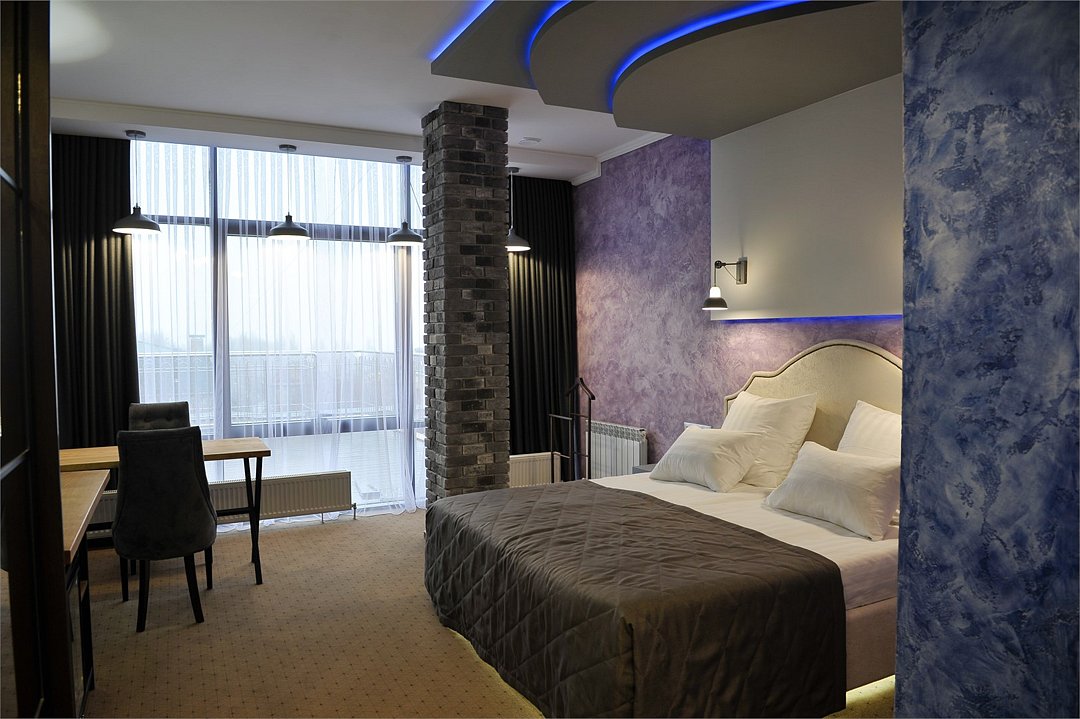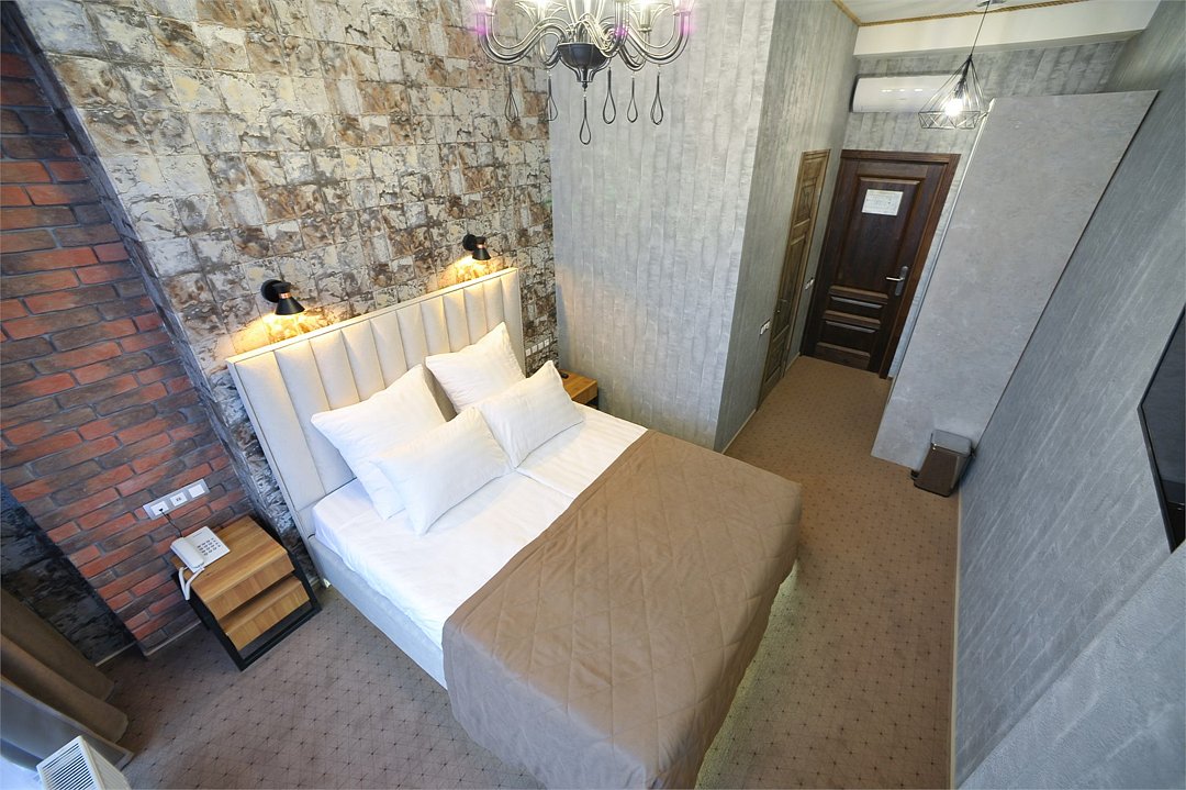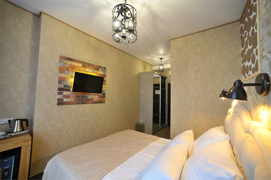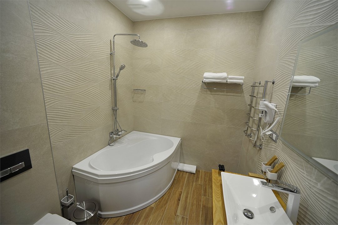 Улучшенный номер стандарт оснащен двухспальной кроватью king-size, плазменным телевизором, кондиционером, большим шкафом-купе, подсветка в комнате и ванной, душ, два халата, полотенца, тапочки, душевые принадлежности, одноразовые наборы(зубная щетка, расческа, бритвенный и косметический набор, шапочка для душа), так же в номере имеется фен, чайник и мини-бар с напитками и легкими закусками.Услуги и удобства