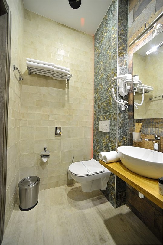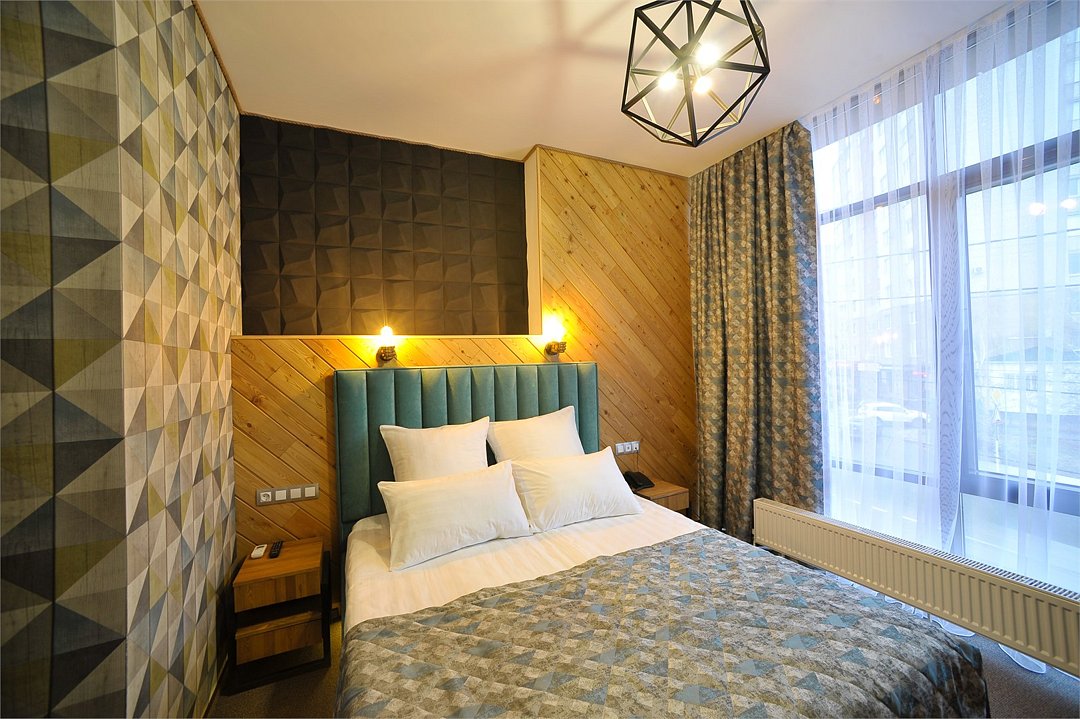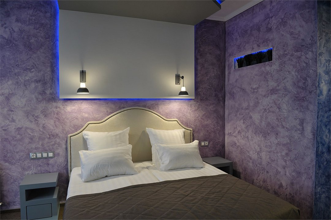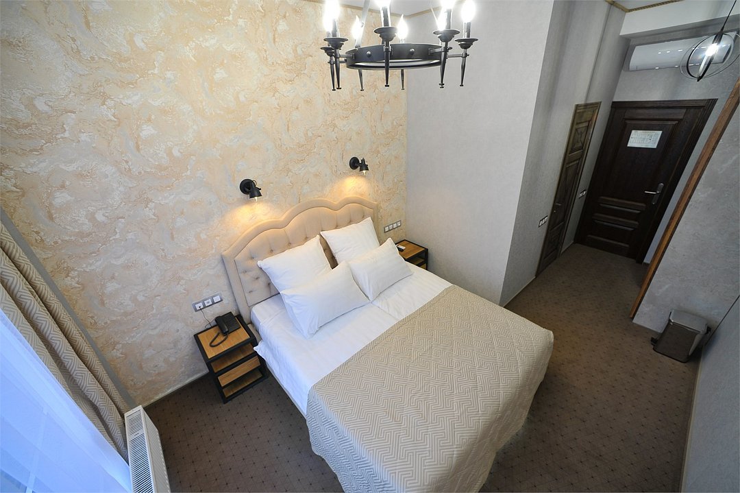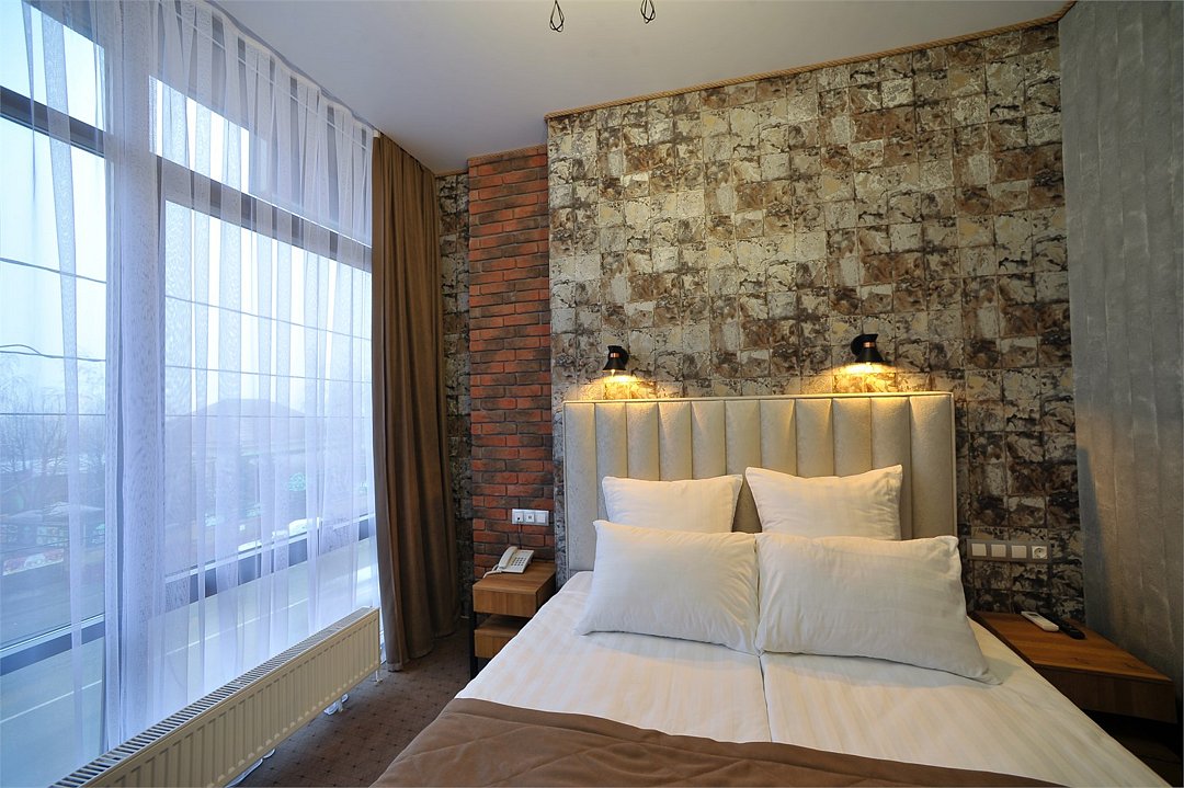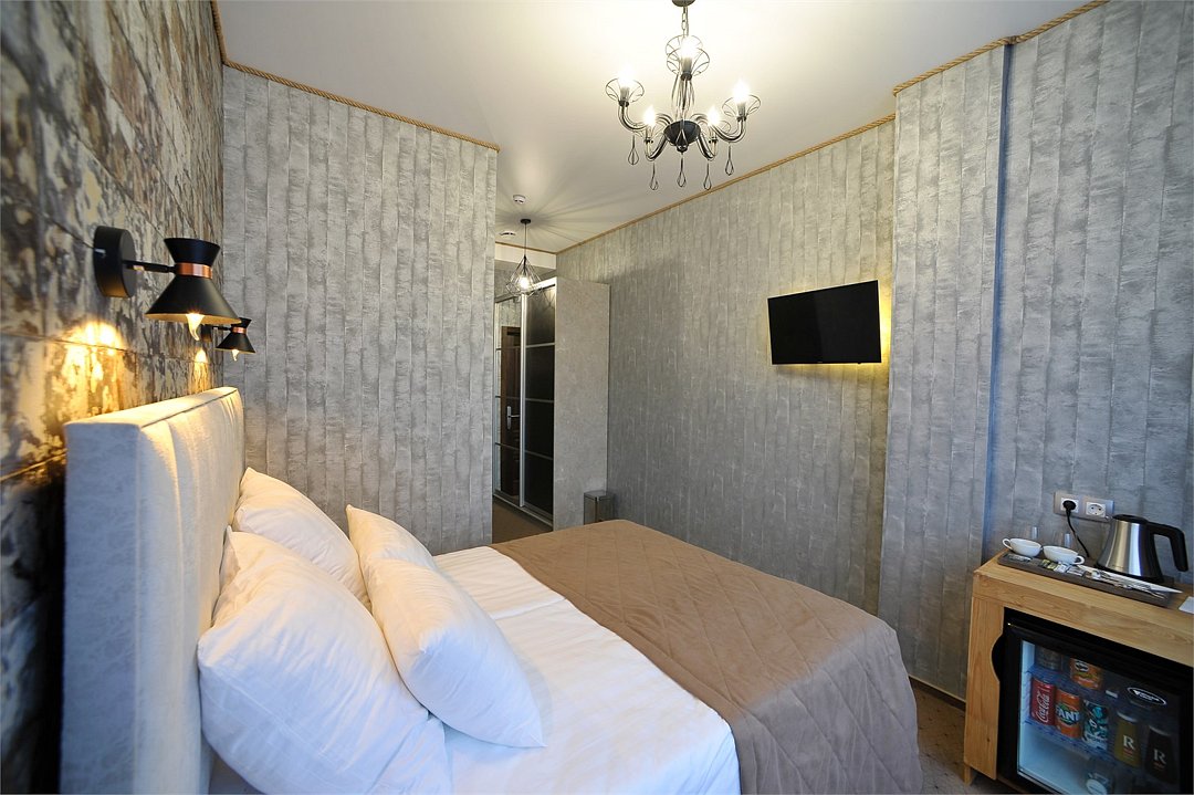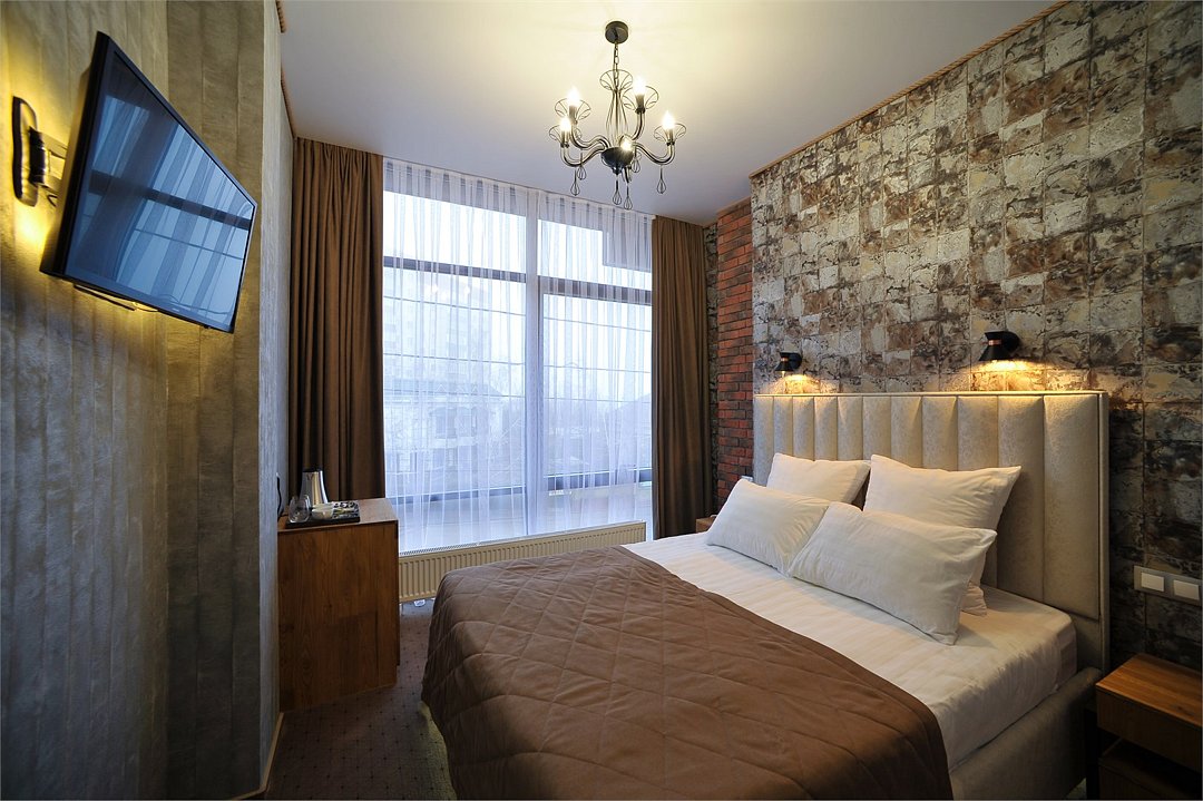Улучшенный номер стандарт оснащен двухспальной кроватью king-size, плазменным телевизором, кондиционером, большим шкафом-купе, подсветка в комнате и ванной, душ, два халата, полотенца, тапочки, душевые принадлежности, одноразовые наборы(зубная щетка, расческа, бритвенный и косметический набор, шапочка для душа), так же в номере имеется фен, чайник и мини-бар с напитками и легкими закусками.Услуги и удобства