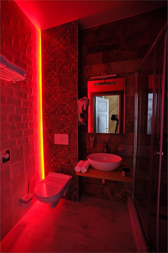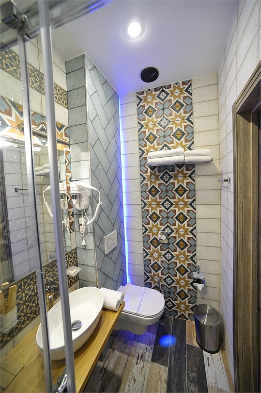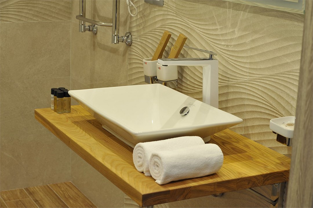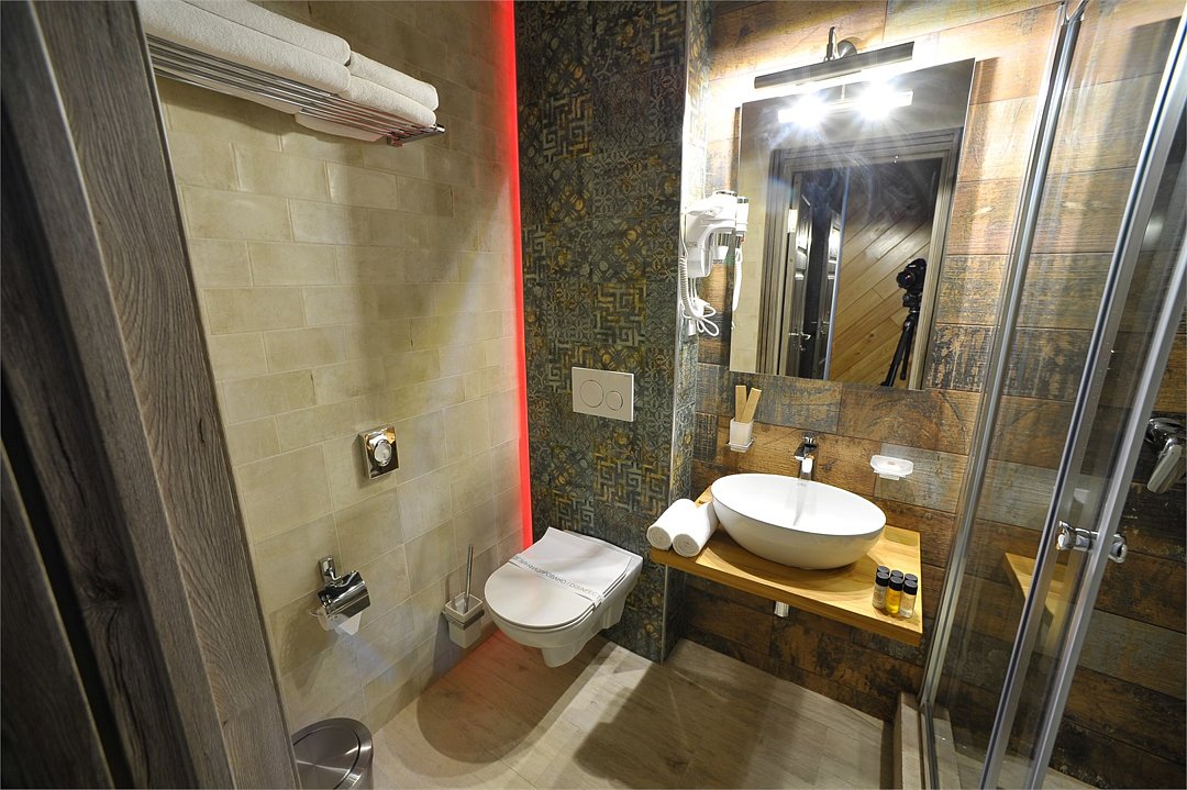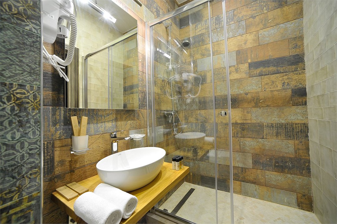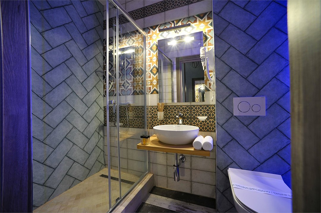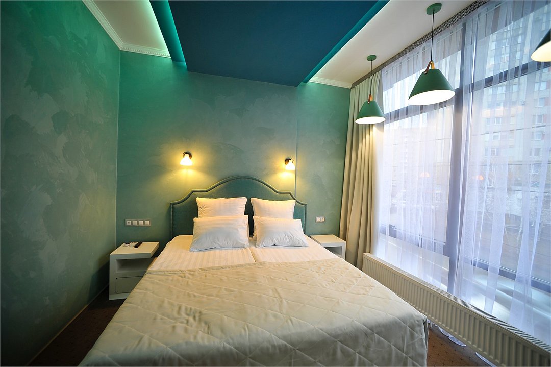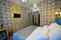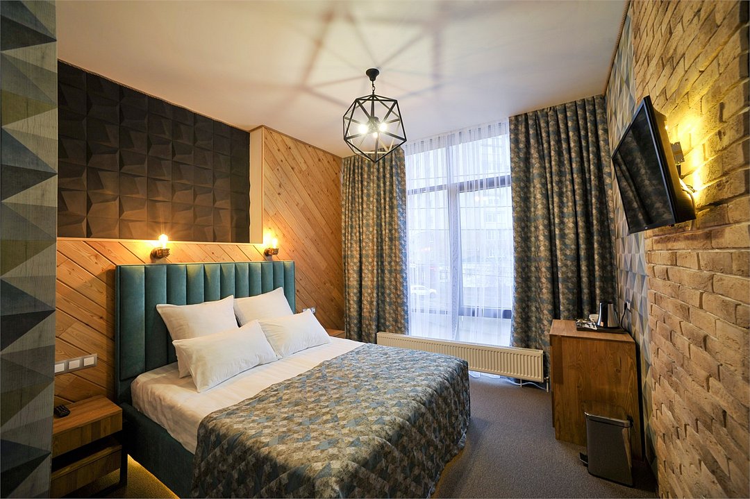 Улучшенный номер стандарт оснащен двухспальной кроватью king-size, плазменным телевизором, кондиционером, большим шкафом-купе, подсветка в комнате и ванной, душ, два халата, полотенца, тапочки, душевые принадлежности, одноразовые наборы(зубная щетка, расческа, бритвенный и косметический набор, шапочка для душа), так же в номере имеется фен, чайник и мини-бар с напитками и легкими закусками.Услуги и удобства