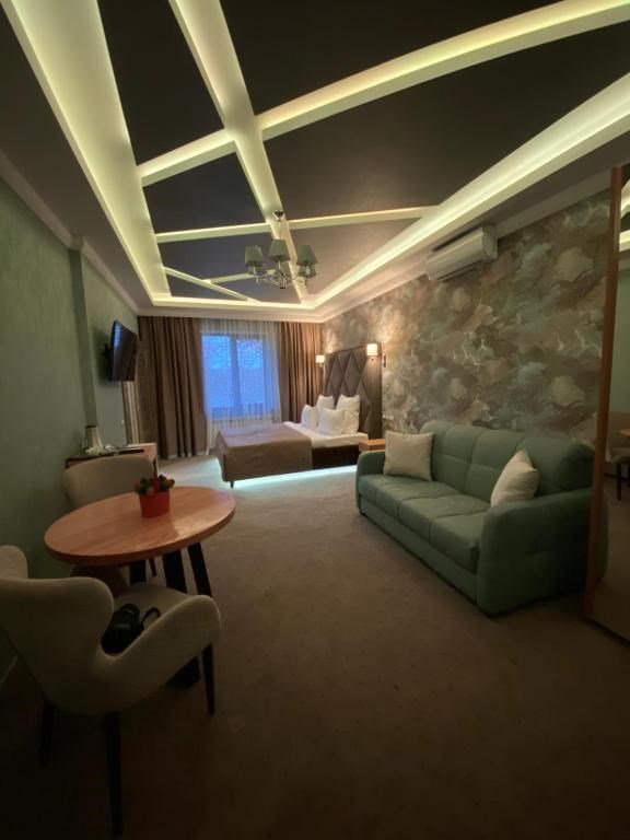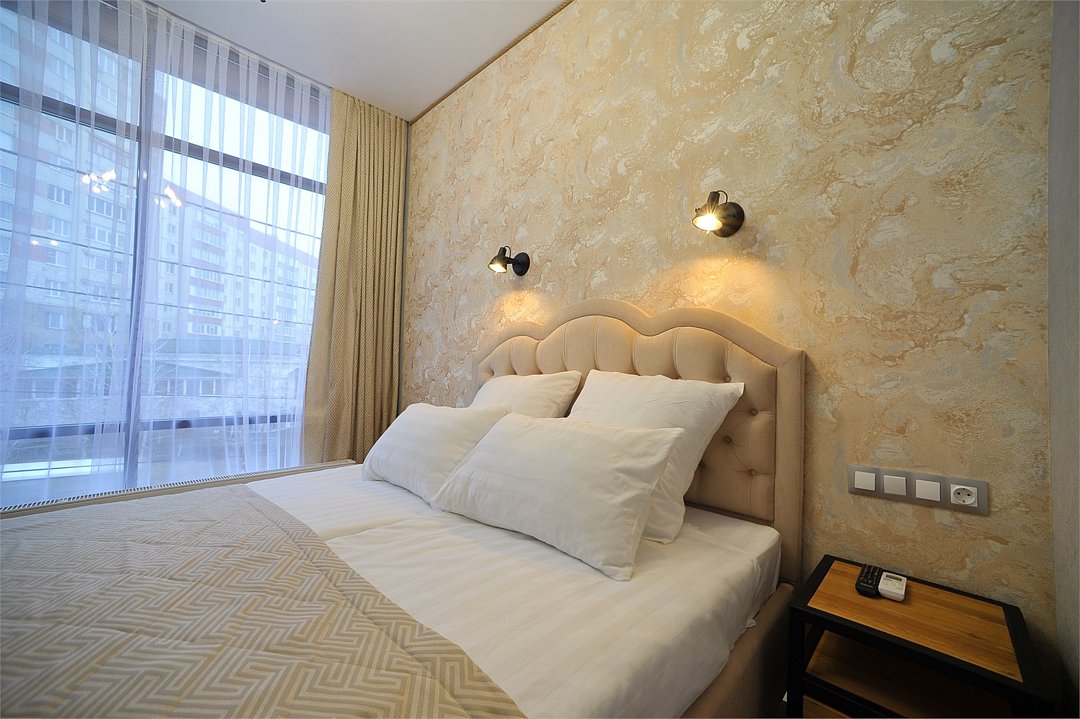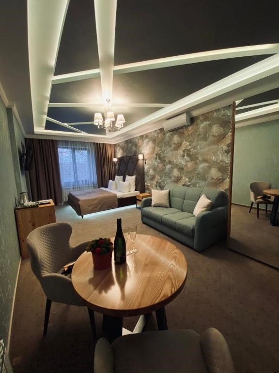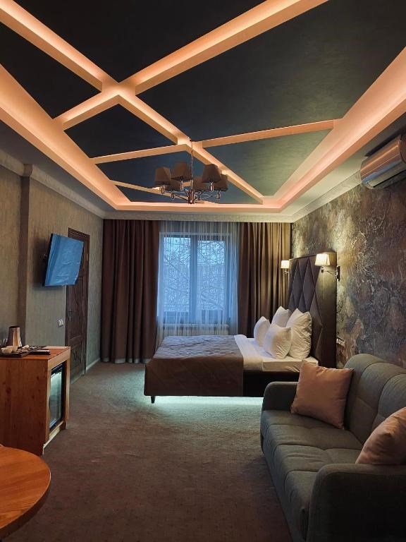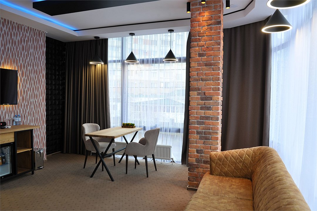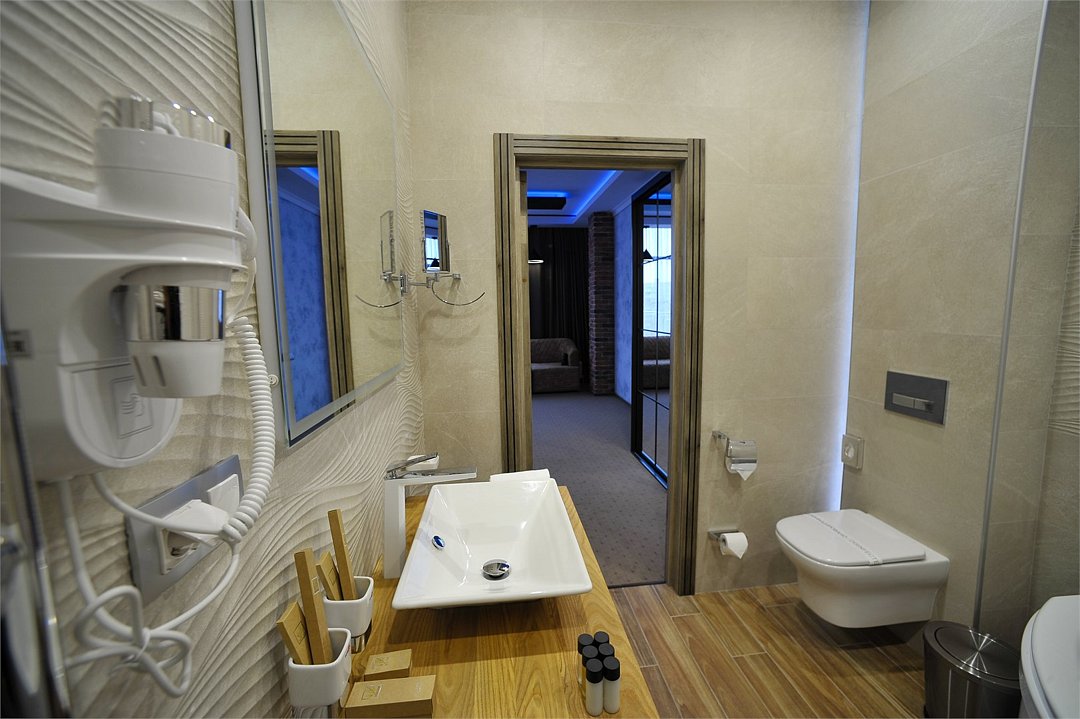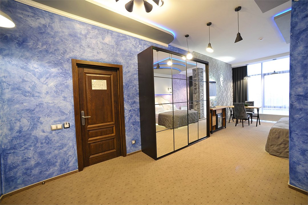 Двухкомнатный номер, большая кровать размера king-size, большой диван, два плазменных телевизора, два кондиционера, большой шкаф купе, подсветка в каждой комнате и ванной, ванна, два халата, полотенца душевые и косметические принадлежности, одноразовые наборы, тапочки, фен, чайник, кофемашина, музыкальная колонка jbl, мини-бар с напитками и легкими закусками.Услуги и удобства