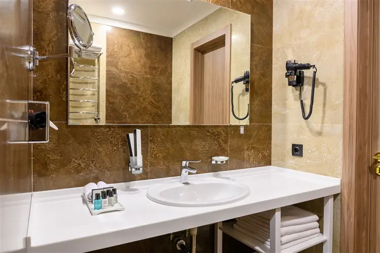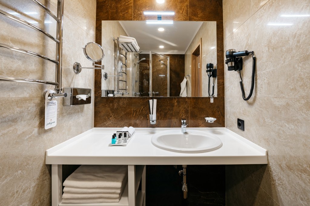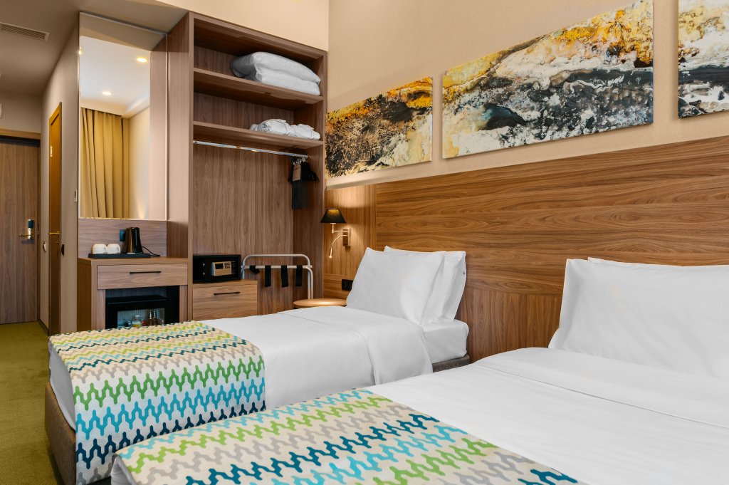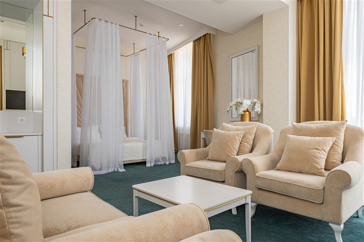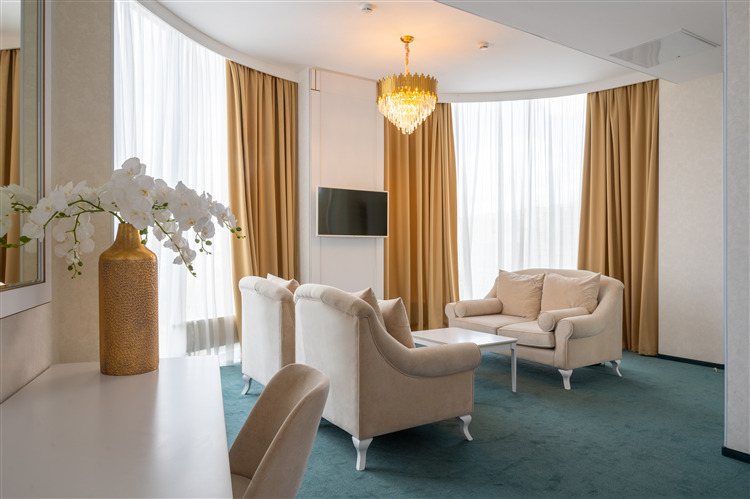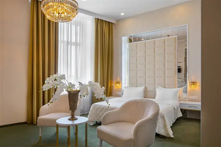 Номер уютно обставлен и оснащён необходимым, чтобы отдохнуть после долгого и насыщенного дня. Имеются телевизор, мини-бар и халат. Перечисленные услуги есть не во всех номерах.