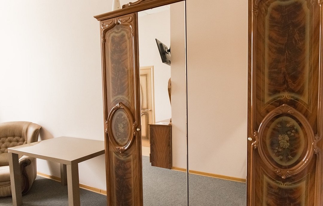 телевизор, Wi-Fi, холодильник, фен, утюг, душевая кабина, банные принадлежности, банные полотенца, тапочки, гигиенические средства, две односпальные кровати, тумбы, стулья, вешалки, обеденный стол, зеркало, набор посуды, обслуживание номеров, чайник, унитаз, вид во двор, туалетные средства, туалет, сплит-система, цифровое тв, мини-кухняВ номере
