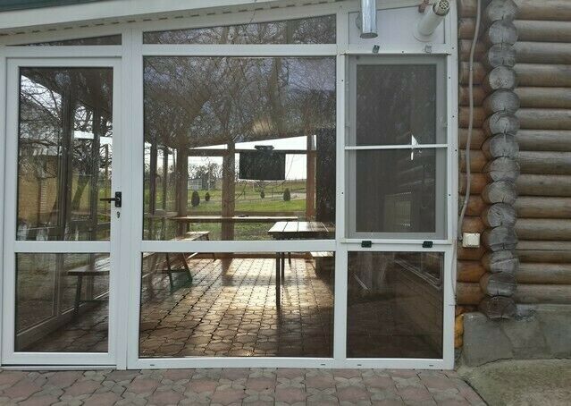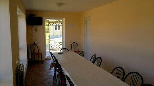 Застекленная веранда(в холодное время года отапливается), вместимостью до 16 человек, 2-х спальная кровать, душ, туалет, телевизор, спутниковое TV, кондиционер, навес, мангал.