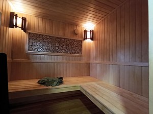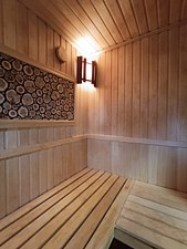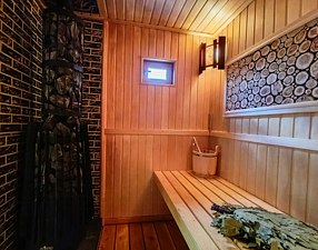 Дровяная баня оснащена всем необходимым для приятного времяпровождения и рассчитана на группу до четырех человек. Здесь можно по-настоящему насладиться парением в уютной и теплой атмосфере, которая особенно ценится гостями.