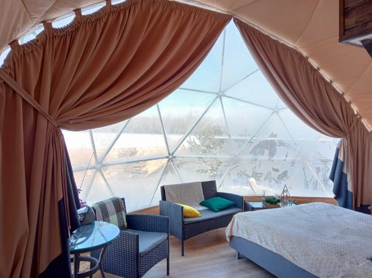Купол очень теплый, душ и туалет в куполе, есть кондиционер.