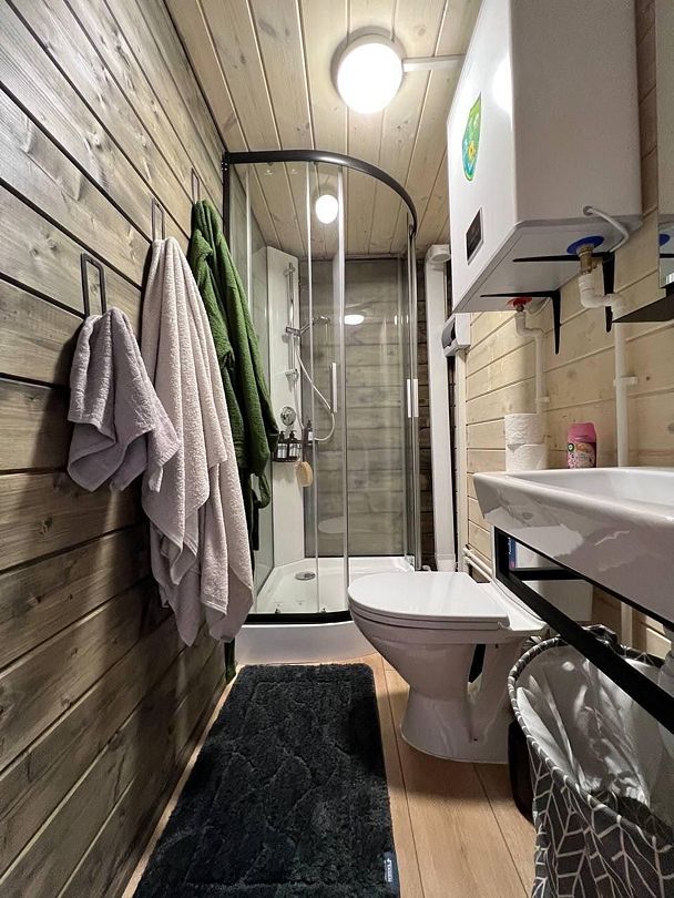 На территории есть небольшая дровяная баня. Вместимость комфортная — 4 человека.