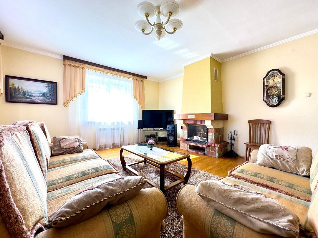 1 этаж : бассейн 15*4 (посещение бассейна в подарок), кухня, санузел, гостиная, баня на дровах (оплата дополнительно - 800руб.час), финская сауна (оплата дополнительно - 600руб/час).