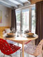 - кухня-камин, посудомоечная машина, СВЧ, холодильник, чайник, плита, посуда